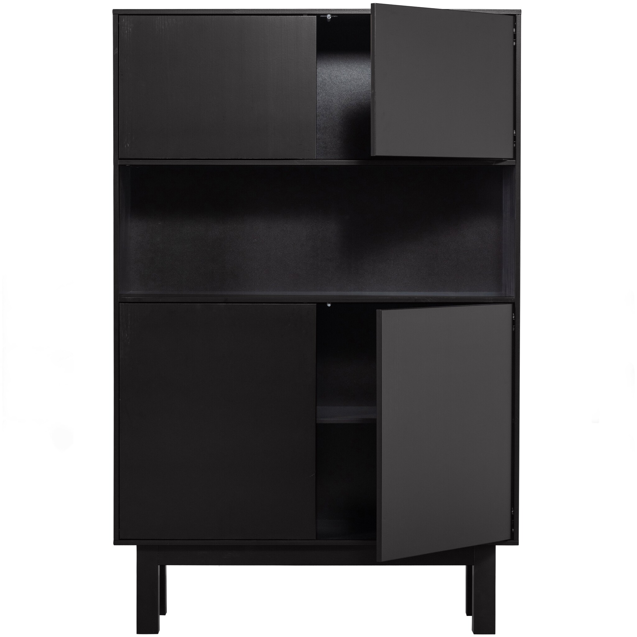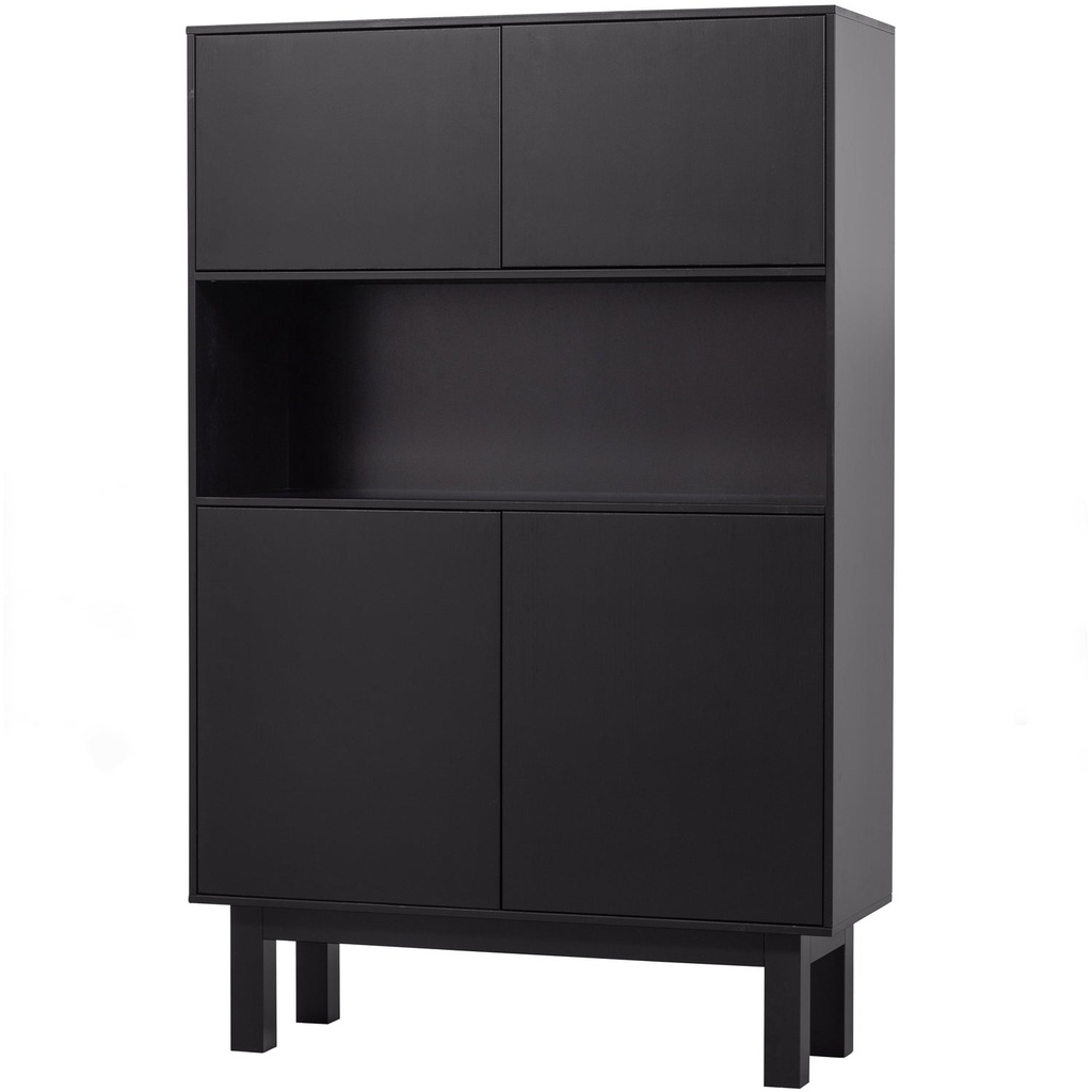 De Finca drankkast heeft vier deuren en vier royale opbergvakken. Achter de bovenste twee deuren bevindt zich een afgeschermd opbergvak van 39x108x39 cm (hxbxd). Het open vak hieronder biedt meer dan genoeg ruimte voor bijzonder glaswerk of decoratie. De twee vakken hieronder worden afgeschermd door twee deuren, deze vakken hebben een hoogte van 31 cm en strekken zich over de gehele breedte van de kast.