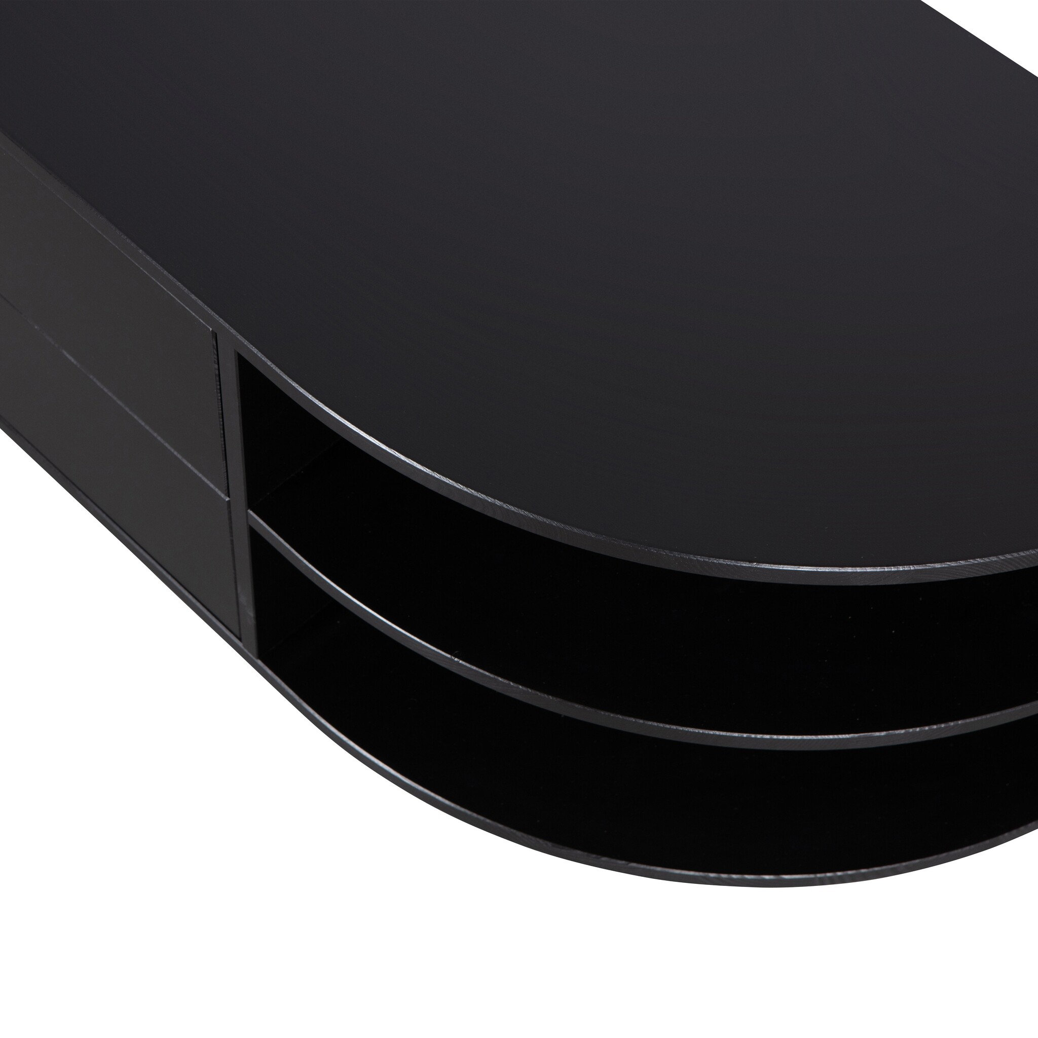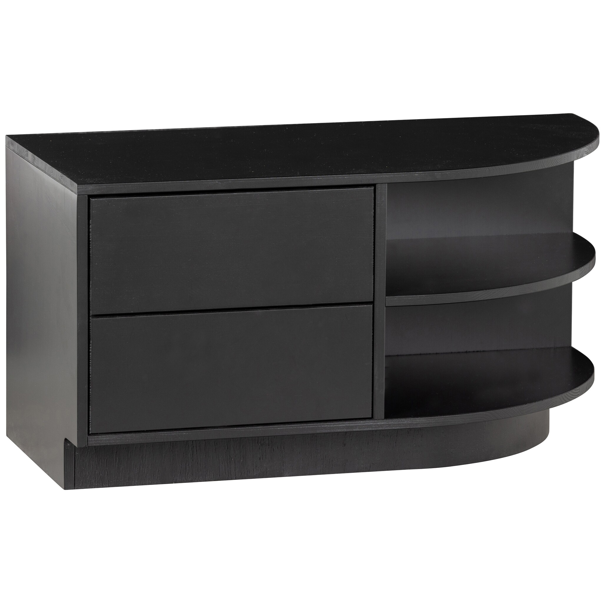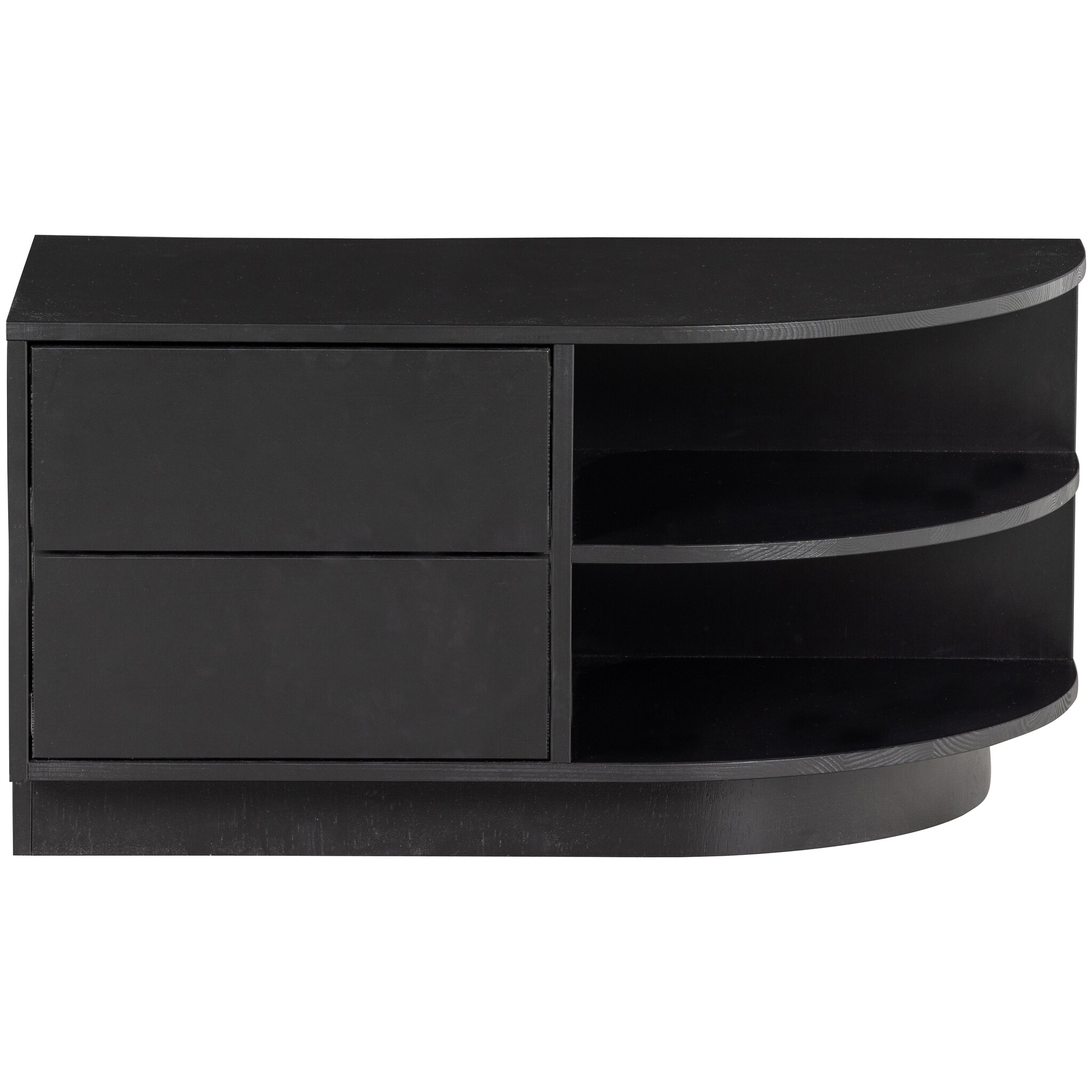 Het Finca tv meubel met rond element is een waar pronkstuk in de woonruimte. De open vakken bieden genoeg ruimte voor het presenteren van jouw mooiste woondecoratie. De twee laden houden nog eens een ruime opbergruimte uit het zicht. De onderrand van het tv meubel laat 7 cm ruimte over aan de voorzijde, hierdoor lijkt het meubel te zweven.