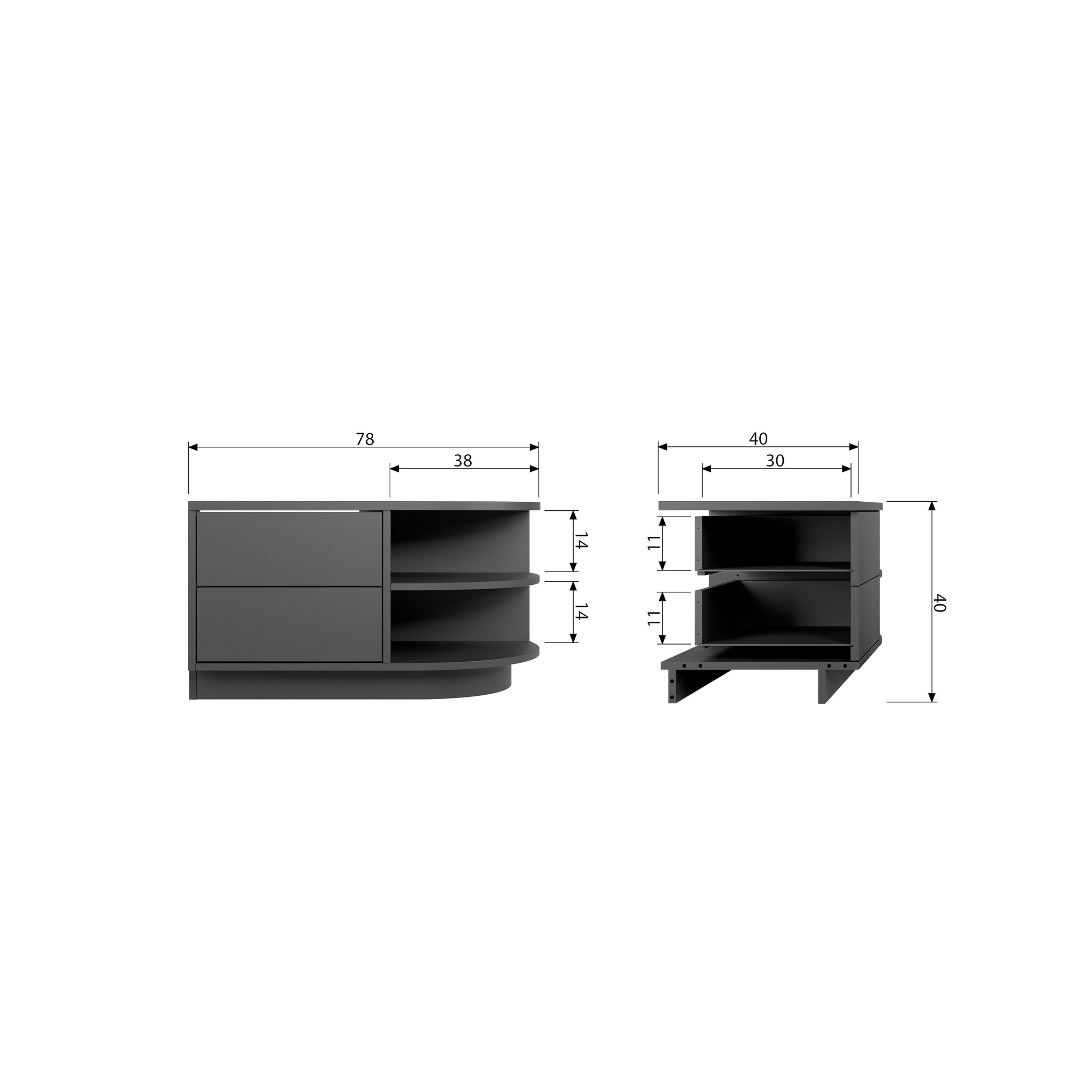 - H 40 cm x B 78 cm x D 40 cm