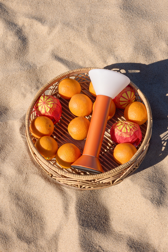 Illuminate your evenings with the Flash Portable Lamp, a charming blend of nostalgia and modernity. Fashioned from glass and metal, its retro shape reminiscent of an old flashlight, this metallic bright orange gem adds a cosmic flare to any room. Handy and stylish, just grab and bring it wherever you need a cosy glow. Plus, with the base functioning as a dimmer, you can switch from vibrant to serene light with a touch. A perfect companion for your night-time reading or relaxed ambience creation.
