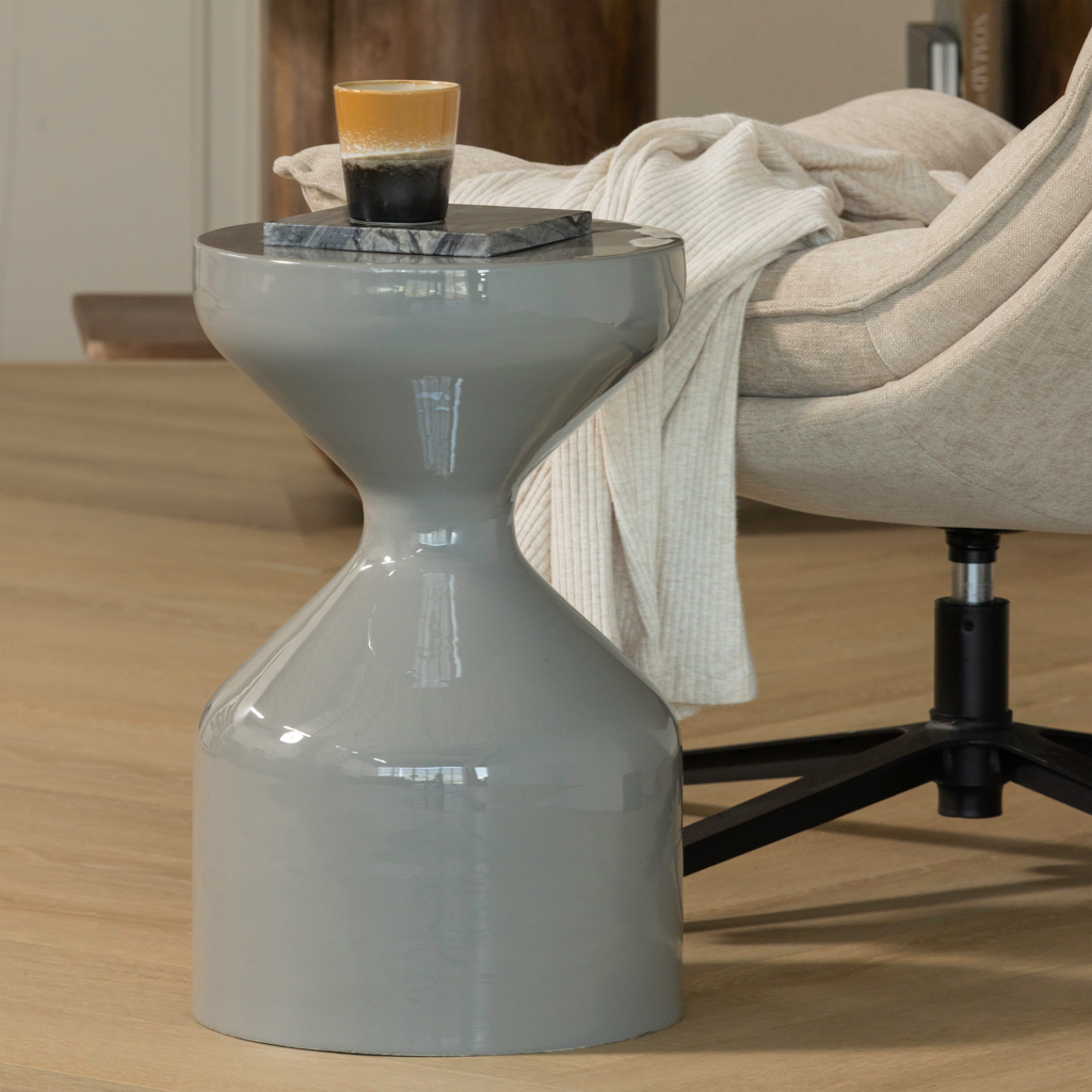De Floyd bijzettafel van WOOOD valt op door zijn ronde vormen en glanzende afwerking in een stijlvolle lichtgrijze tint. Het compacte formaat maakt hem veelzijdig inzetbaar, van nachtkastje tot eyecatcher naast de bank. Een krachtig accent met een zachte uitstraling.