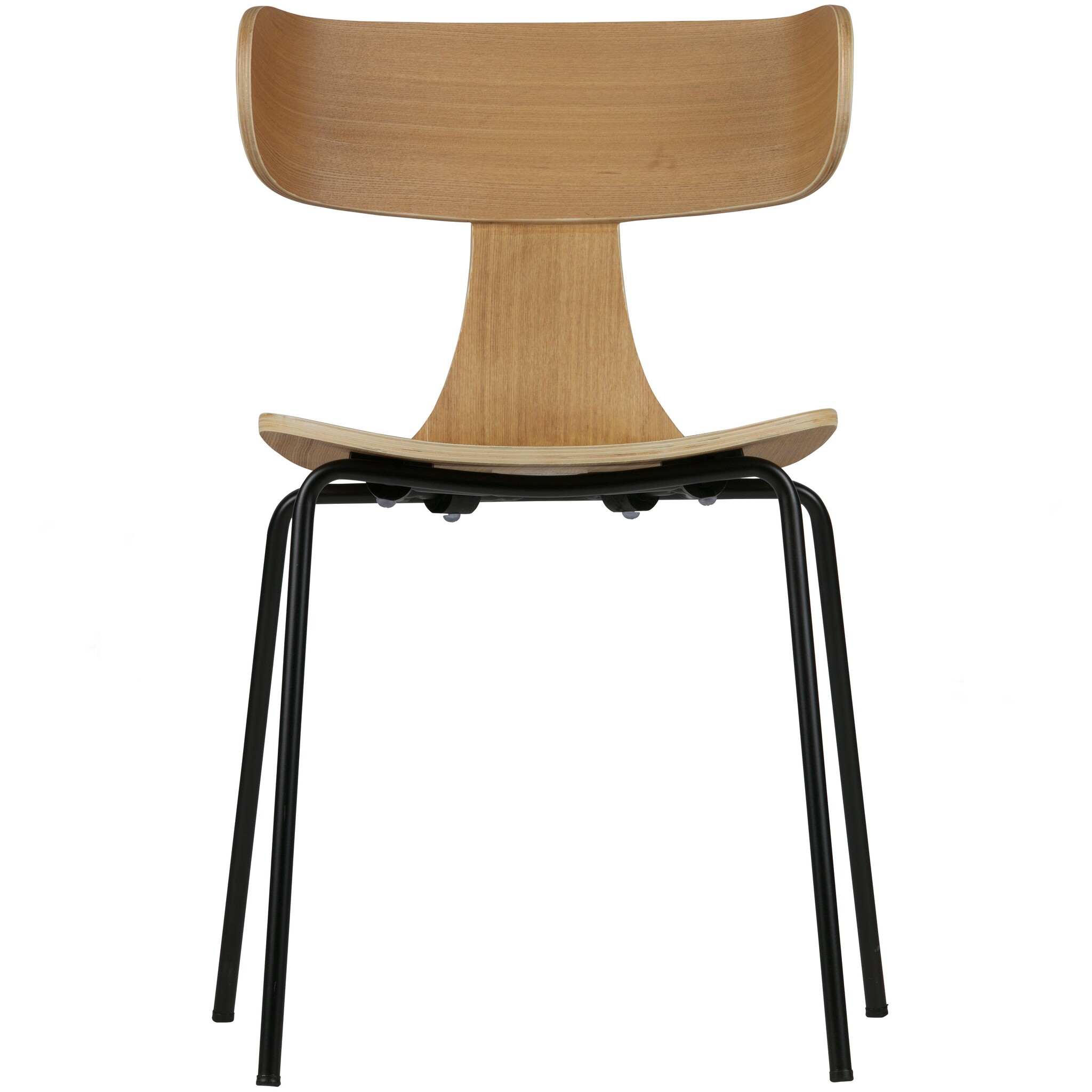 De zitting is gevormd uit multiplex, bekleed met een essenhout fineer. Het onderstel is gemaakt van een stalen frame in matzwart. Essenhout is een iets zachte houtsoort met een strakke, rechte nerf. De rechte nerftekening zorgt ervoor dat essenhout goed gebogen kan worden, dit maakt essenhout zeer geschikt voor de meubelbranche. Bewerkt essenhout is sterk en slijtvast, maar onbehandeld essenhout kan veel werking vertonen en snel vergelen. Geschuurd essenhout zorgt voor een nette, gladde uitstraling. Geborsteld essen heeft meer karakter en bandgezaagd essenhout heeft een zeer robuuste en ruwe look.