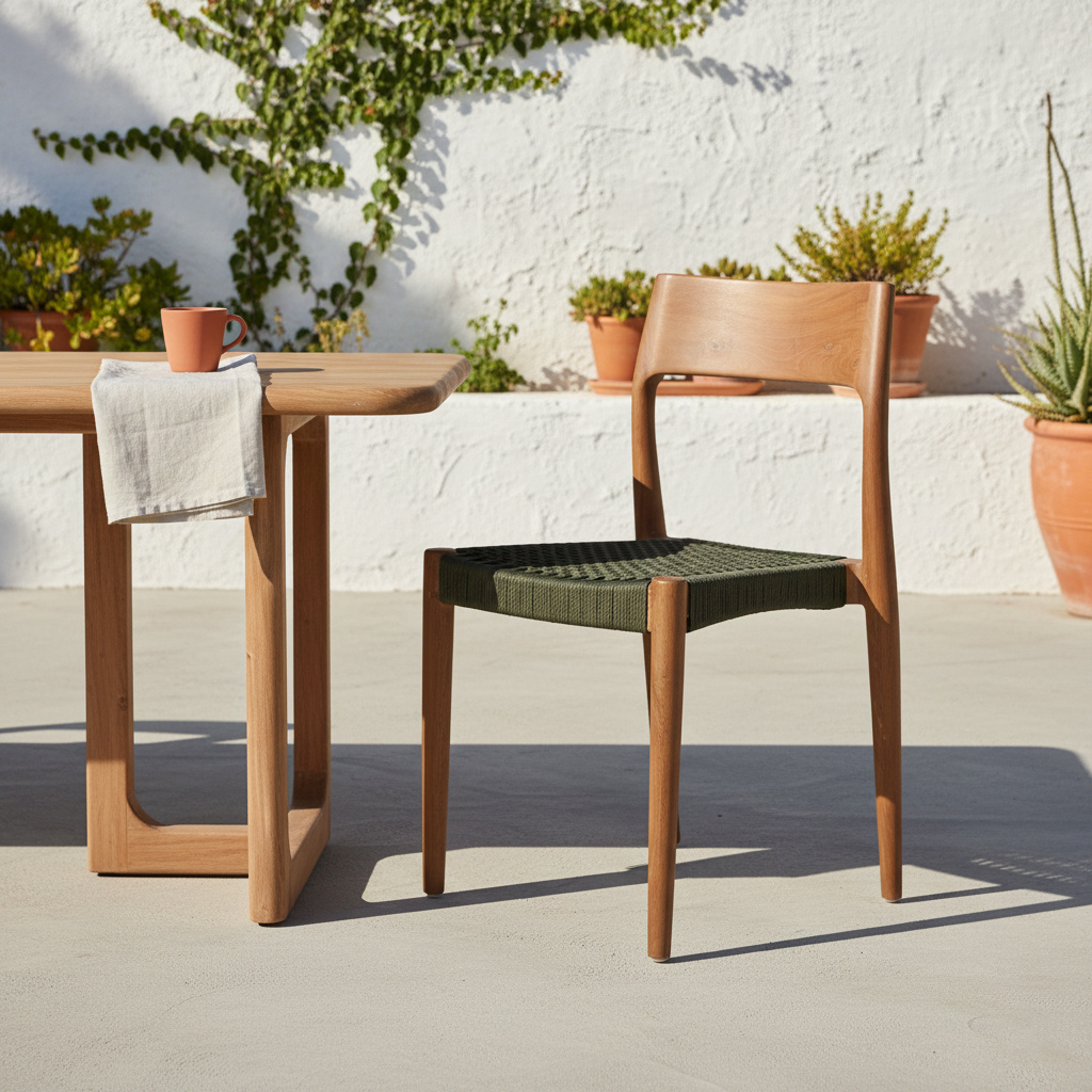 De Freya tuinstoel combineert een strak, Scandinavisch design met optimaal zitcomfort. Het stevige teakhouten frame geeft de stoel stabiliteit, terwijl de zitting van duurzaam touw zacht aanvoelt en prettig zit. Dankzij de strakke lijnen en het natuurlijke materiaal past de stoel moeiteloos in iedere tuin, op het terras of balkon, maar doet het ook uitstekend als stijlvolle eetkamerstoel binnen De stoel is verkrijgbaar met of zonder armleuningen, en je kunt kiezen uit naturel of groen touw. Ook is er een variant in lichter teakhout beschikbaar, zodat je de stoel perfect kunt afstemmen op jouw interieur of buitenruimte. Zo maak je een harmonieuze en stijlvolle opstelling, binnen of buiten..