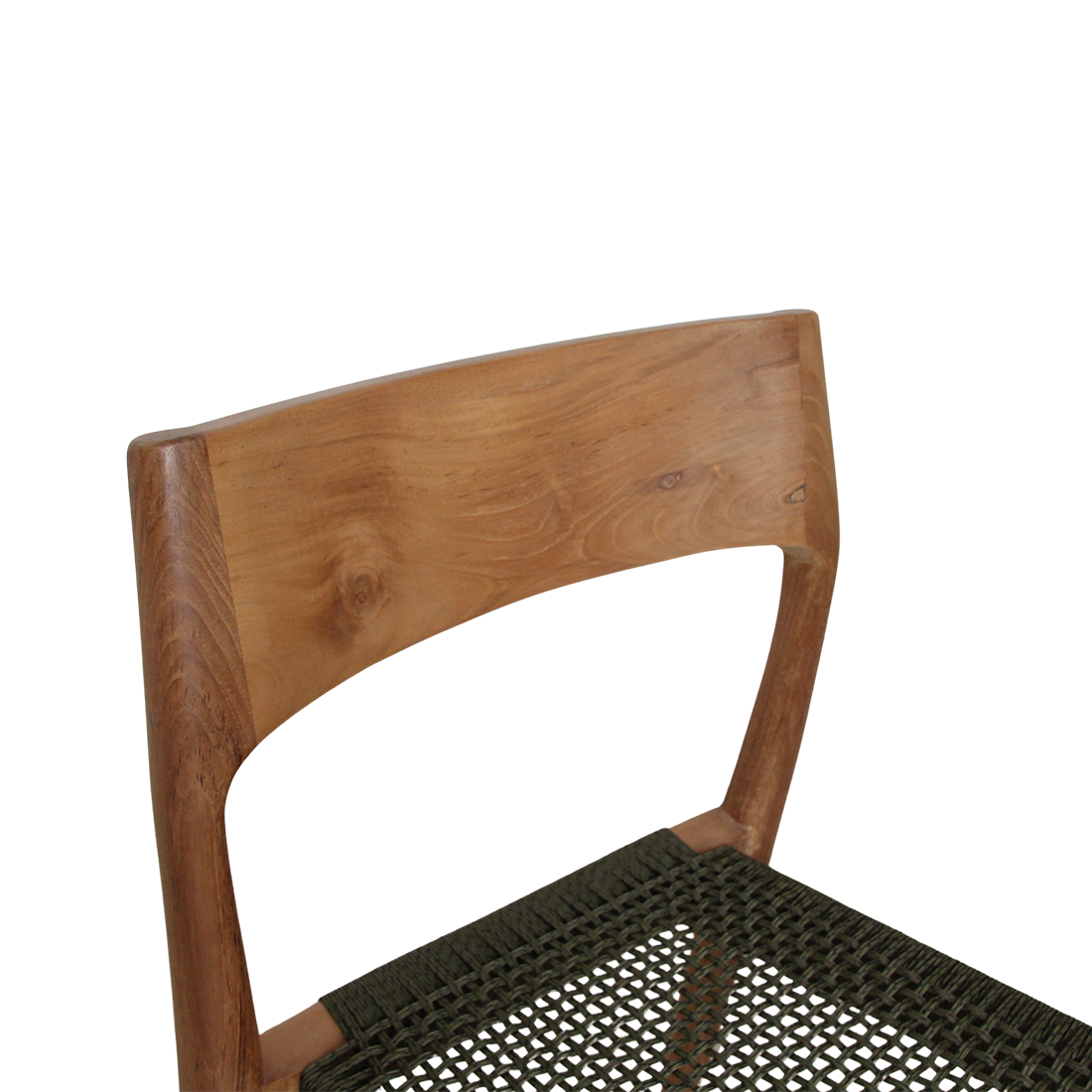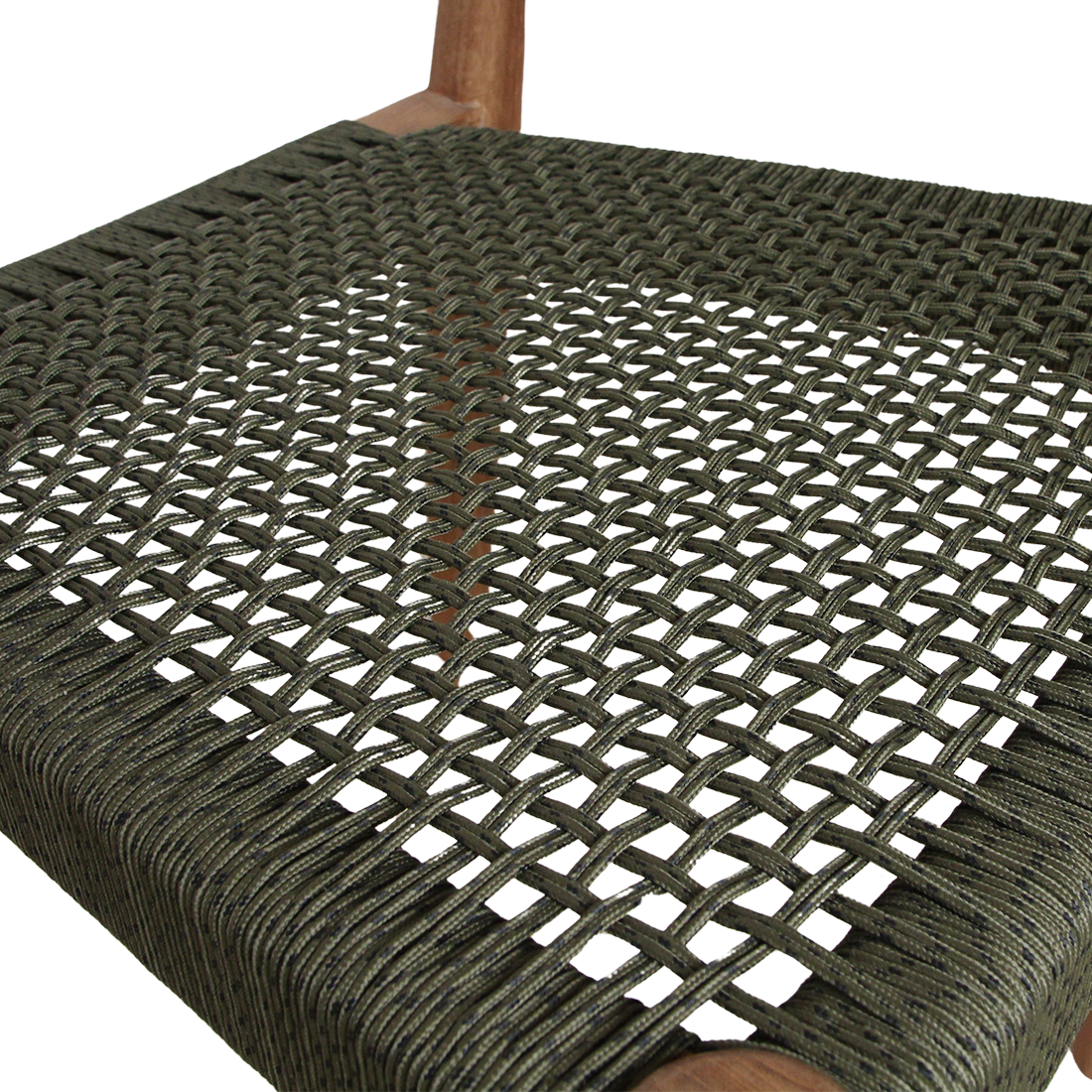 Teakhout is van nature duurzaam door het hoge oliegehalte en kan prima tegen weer en wind. Laat je het hout onbehandeld? Dan krijgt het na verloop van tijd een mooie, natuurlijke grijze kleur zonder in te leveren op stevigheid. Wil je liever de warme, originele teakkleur behouden? Breng dan jaarlijks een dun laagje teakolie aan. Het touw van de zitting is eenvoudig schoon te houden met een droge of licht vochtige doek.
