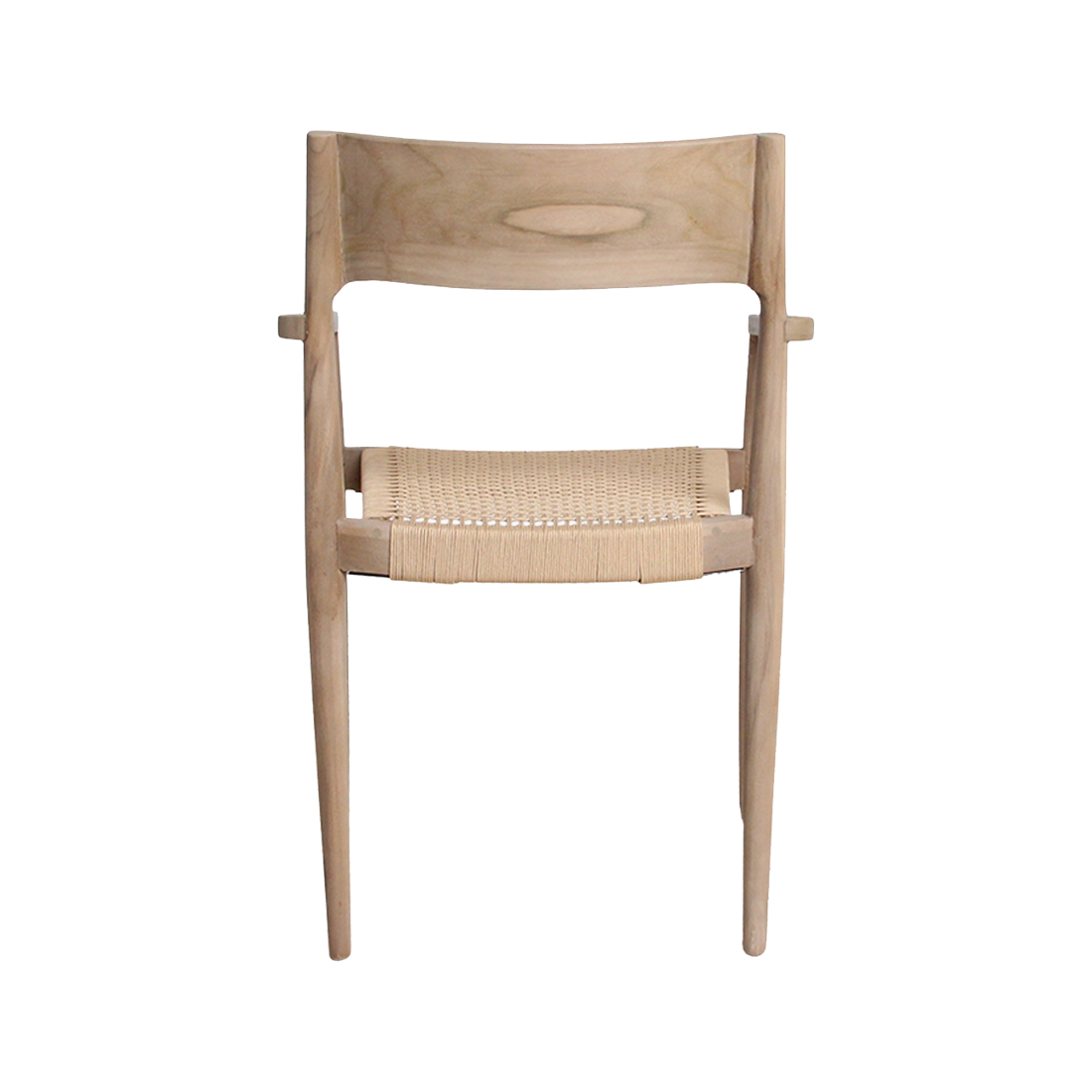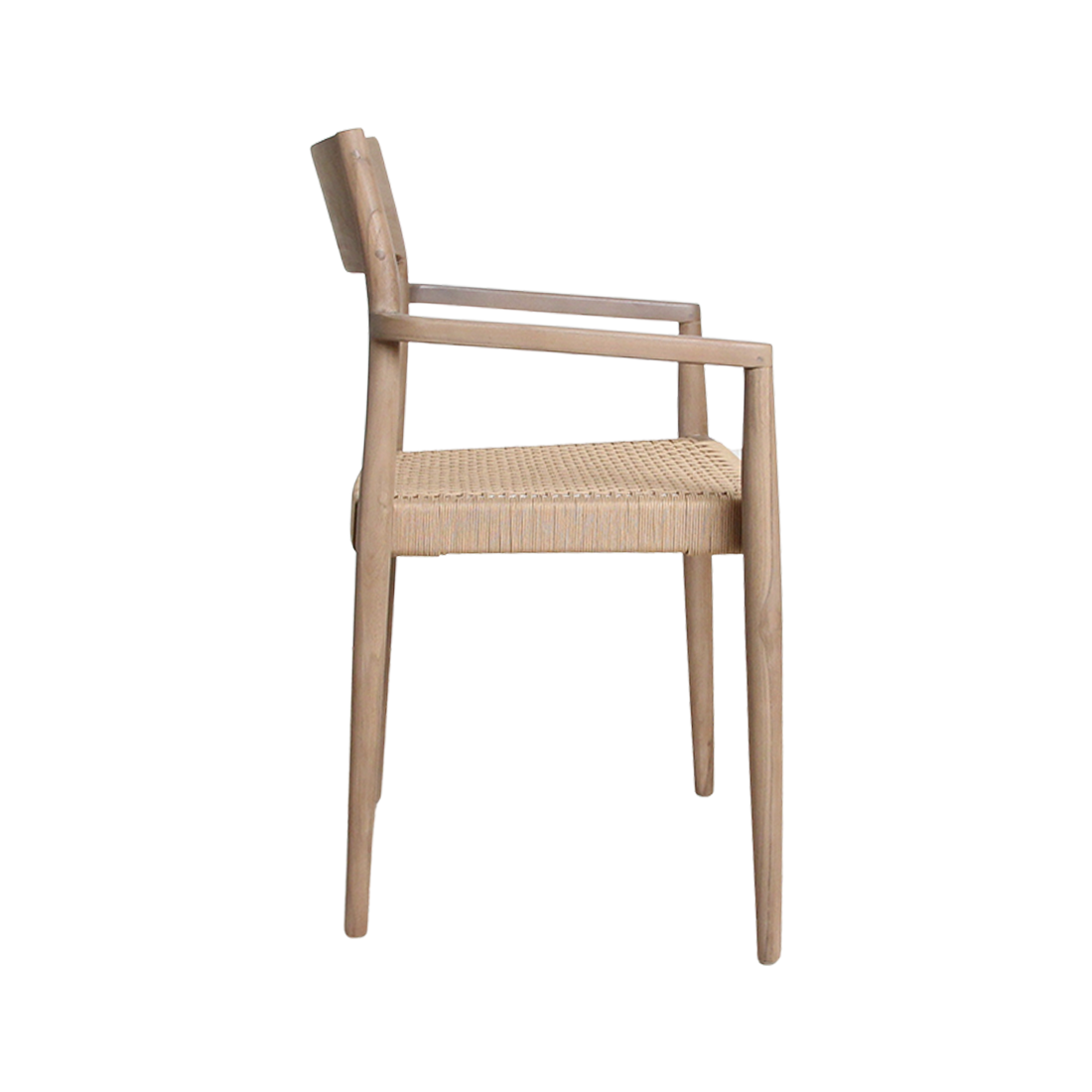 De Freya tuinstoel met armleuning combineert een strak, Scandinavisch design met optimaal zitcomfort. Het stevige teakhouten frame geeft de stoel stabiliteit, terwijl de zitting van duurzaam touw zacht aanvoelt en prettig zit. Dankzij de strakke lijnen en het natuurlijke materiaal past de stoel moeiteloos in iedere tuin, op het terras of balkon, maar doet het ook uitstekend als stijlvolle eetkamerstoel binnen De stoel is verkrijgbaar met of zonder armleuningen, en je kunt kiezen uit naturel of groen touw. Ook is er een variant in donkerder teakhout beschikbaar, zodat je de stoel perfect kunt afstemmen op jouw interieur of buitenruimte. Zo maak je een harmonieuze en stijlvolle opstelling, binnen of buiten..