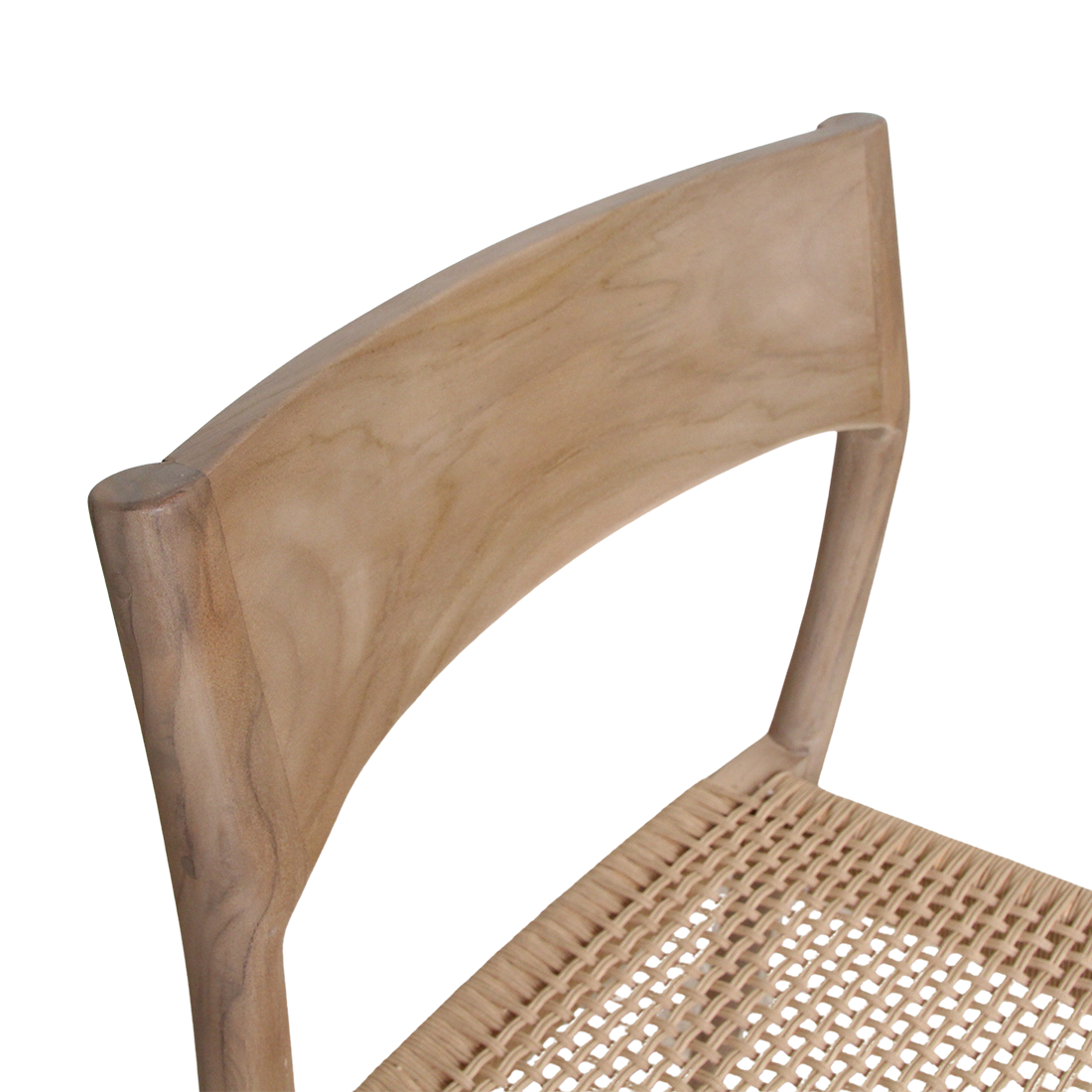 Teakhout is van nature duurzaam door het hoge oliegehalte en kan prima tegen weer en wind. Laat je het hout onbehandeld? Dan krijgt het na verloop van tijd een mooie, natuurlijke grijze kleur zonder in te leveren op stevigheid. Wil je liever de warme, originele teakkleur behouden? Breng dan jaarlijks een dun laagje teakolie aan. Het touw van de zitting is eenvoudig schoon te houden met een droge of licht vochtige doek.