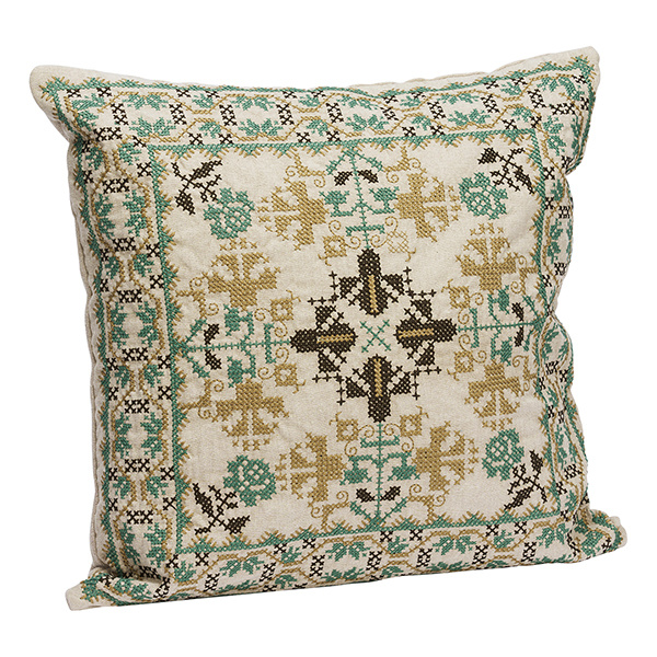 Geef je interieur een subtiele upgrade met deze rustgevende kussenhoes van Madam Stoltz. Het klassieke kruissteekborduursel in beige, olijf, groen en khaki brengt balans en zachtheid in elke ruimte. De tinten sluiten moeiteloos aan bij natuurlijke materialen en Scandinavische interieurs.