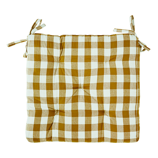Geruite geweven katoenen stoel matraskussen mosterd, wit