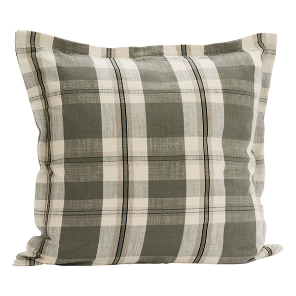 Madam Stoltz Geruite katoenen kussenhoes Khaki gebroken wit zwart