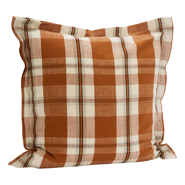 Madam Stoltz Geruite katoenen kussenhoes Pompoenkruid gebroken wit lichtgrijs zwart