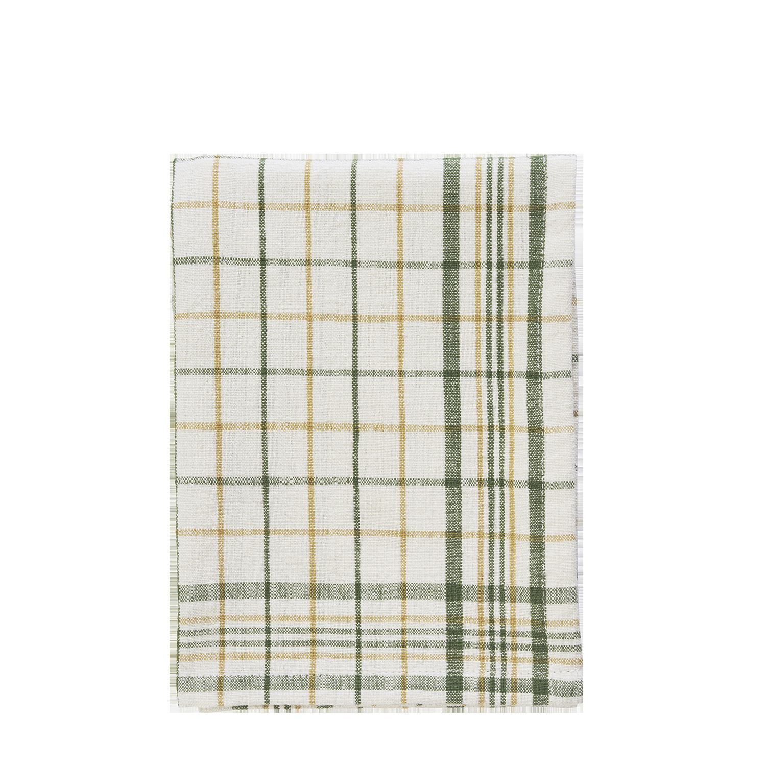 Een klassieke ruit in een verrassend frisse uitvoering: deze theedoek van Madam Stoltz combineert off white met zonnig geel en zachtgroen. Gemaakt van stevig geweven katoen, is deze doek niet alleen een praktische hulp in de keuken, maar ook een sfeervolle blikvanger aan je haakje of ovenhendel.