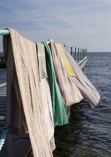 Madam Stoltz Gestreepte hamamhanddoek Roze multicolour
