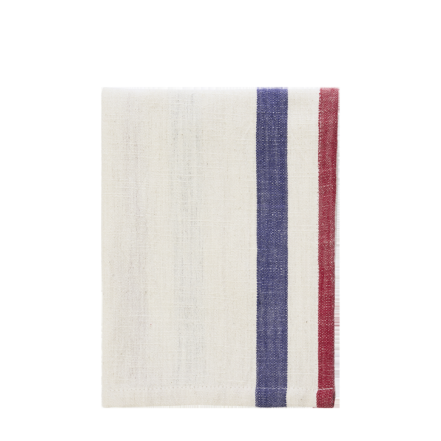 Breng kleur en karakter in je keuken met deze gestreepte theedoek van Madam Stoltz. De combinatie van off white, blauw en rood geeft een speelse, bijna retro uitstraling. Gemaakt in India van stevig geweven katoen dat niet alleen mooi oogt, maar ook bestand is tegen dagelijks gebruik.