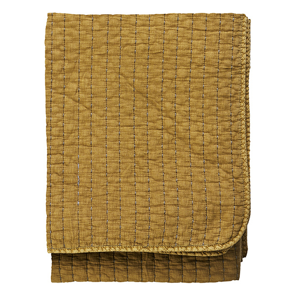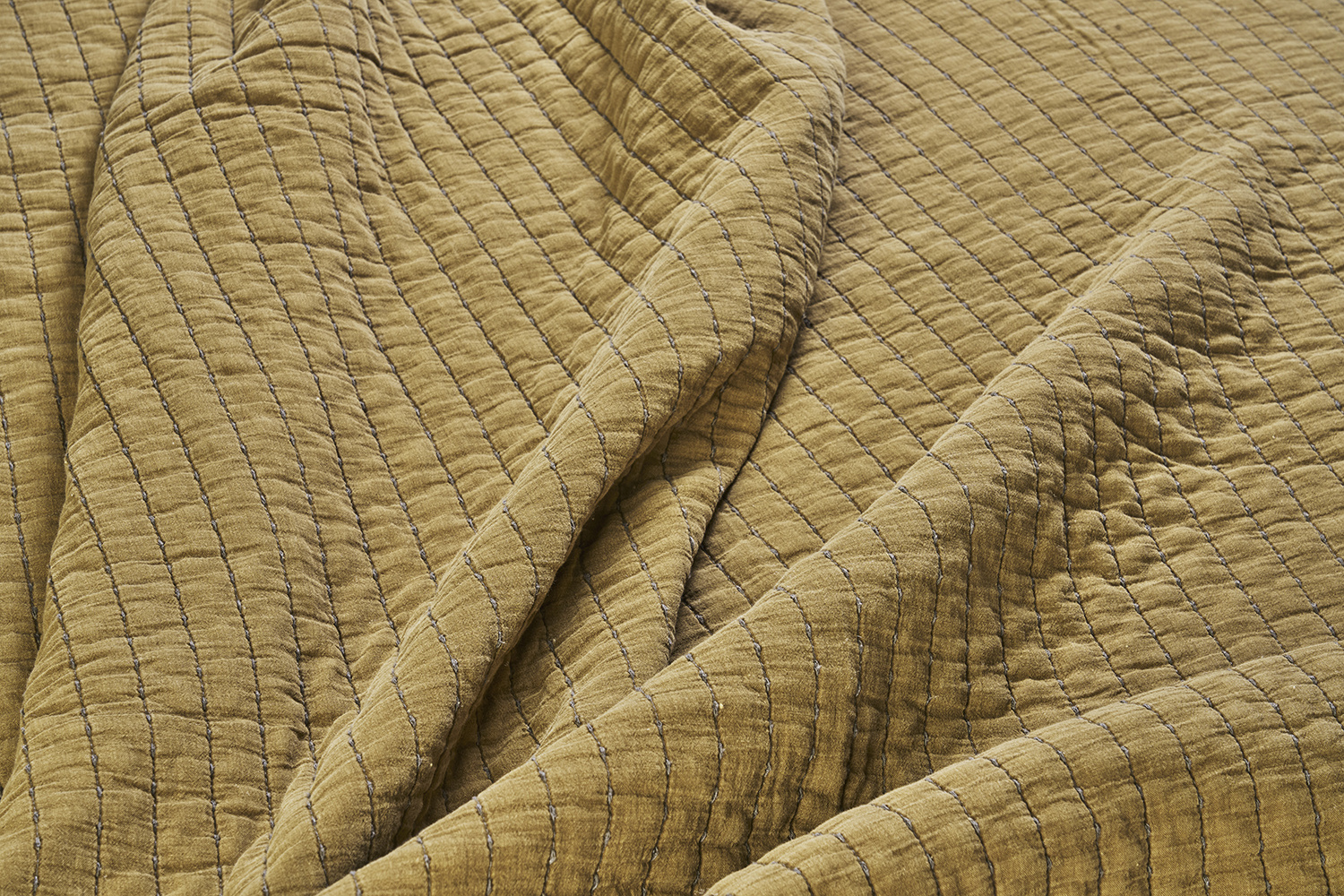 Gewatteerde katoenen plaid – Mosterdgeel & grijs – 130x180 cm