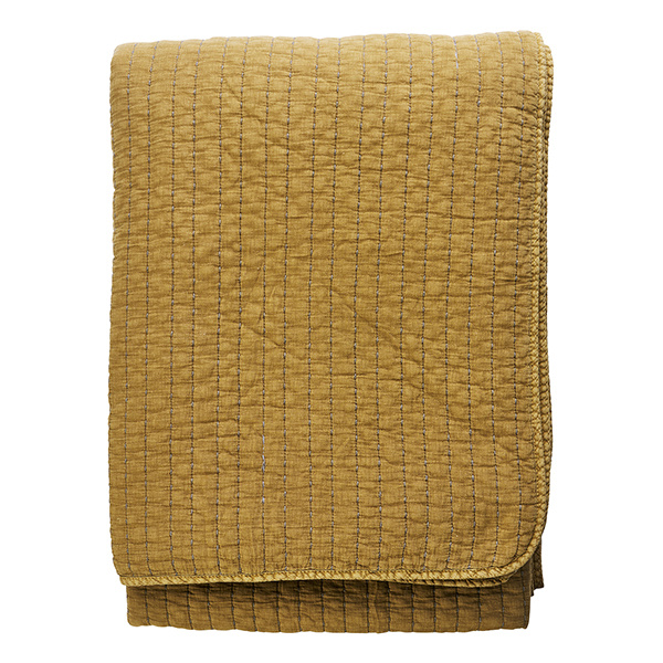 Breng warmte en textuur in huis met deze quilted plaid in mosterdgoud en grijs. Gemaakt van katoen met een lichte polyester vulling en afgewerkt met een stonewashed laag voor extra zachtheid. Deze plaid is perfect voor over je bed, de bank of als cosy picknickkleed in de tuin.