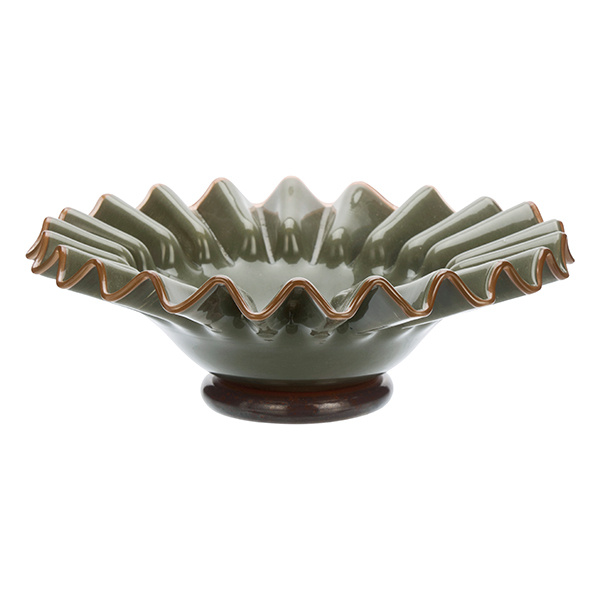 Groen-bruine glazen schaal met zachte art deco vormen