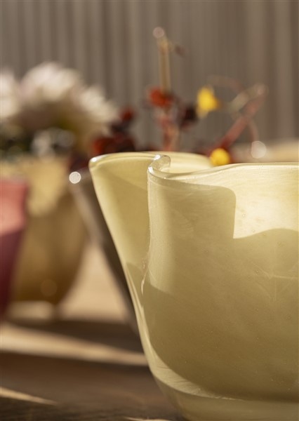 Crèmekleurige glazen vaas met zachte uitstraling