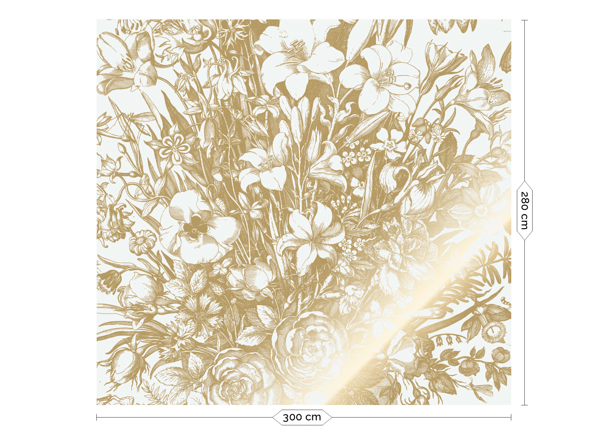 KEK Amsterdam Goud behang Engraved Flowers - offwhite