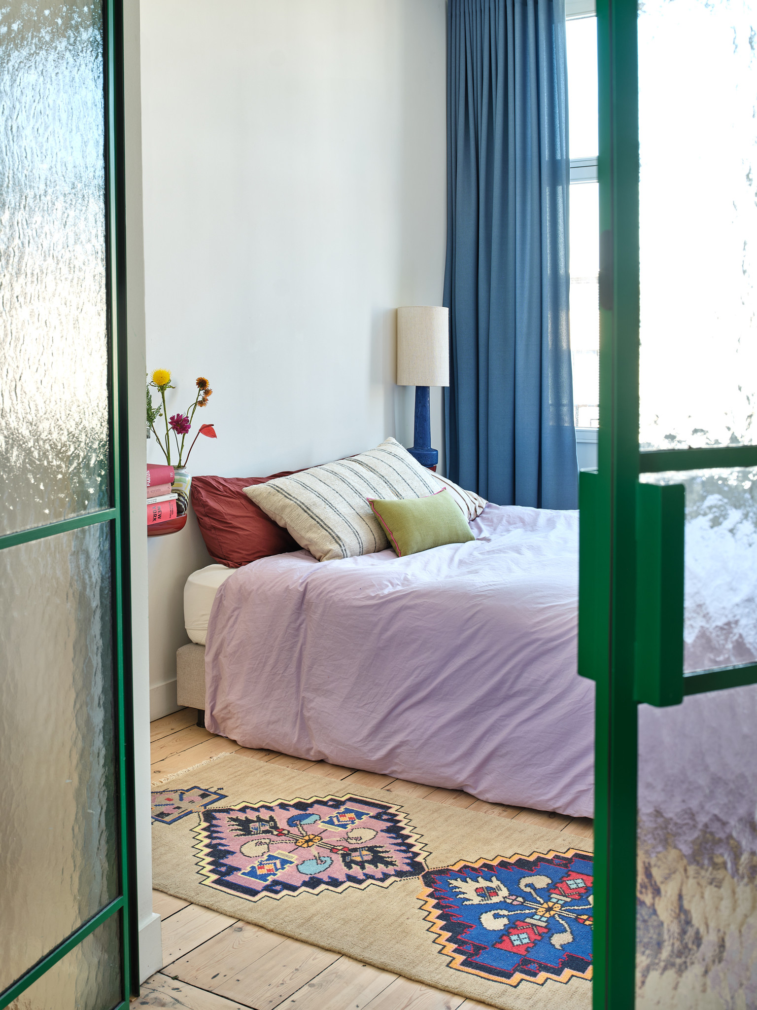 Op zoek naar meer kleur in je interieur, maar weet je niet waar te beginnen? Met deze handgeknoopte wollen loper heb je een natuurlijke basis maar breng je ook mooie blauwe en paarse kleuraccenten aan in je kamer. De badmat geeft ook een leuke sfeer aan je kamer. De badmat is gemaakt van wol en is dus overal waar je de mat neerlegt lekker zacht aan je voeten. Voor bijpassende kussens of beddengoed bekijk de categorie woontextiel.