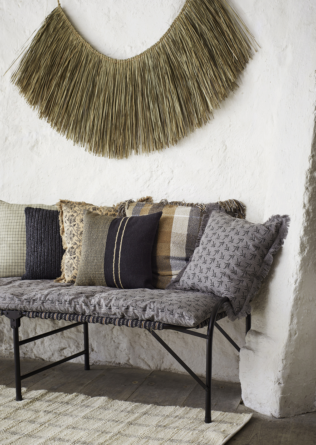 80% jute, 20% cotton Vacuum only and refresh outdoor. Handmade items may vary in colours and patterns 70x200 cm. Aan twee kanten te gebruiken, zie foto's