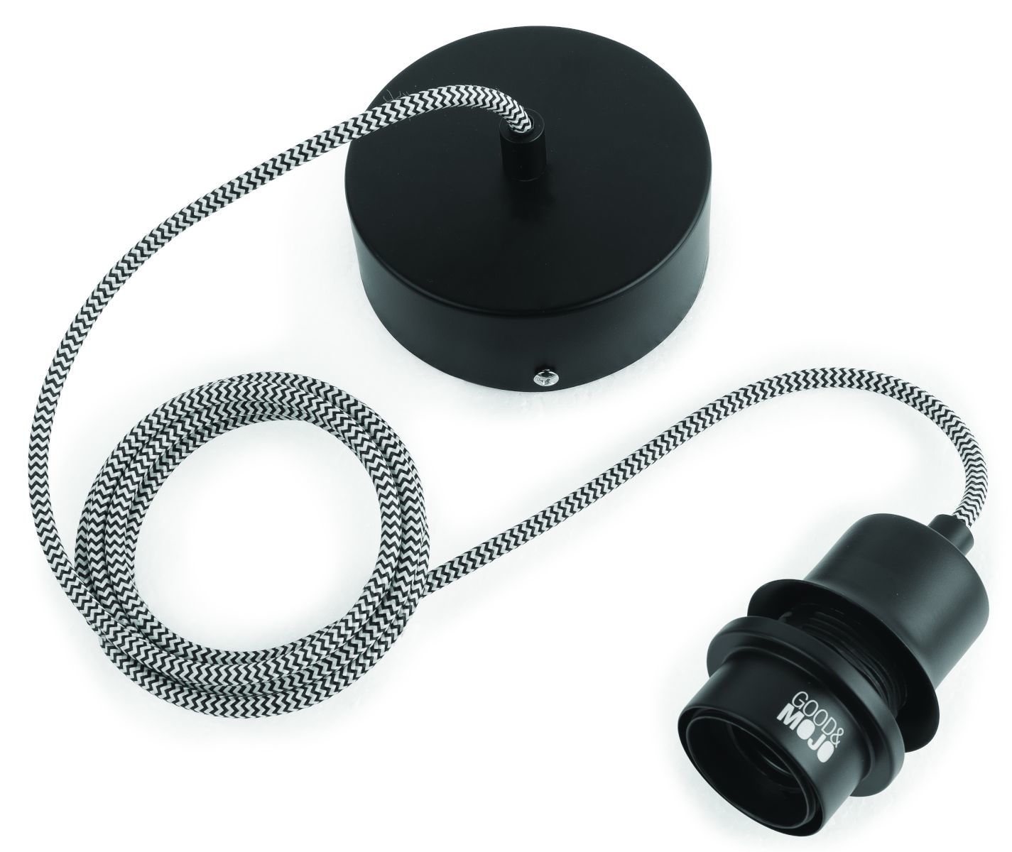 _x000D_Fitting: E27, 40W, Voorzien van plafondkap en 200cm textielsnoer in zwart-wit.