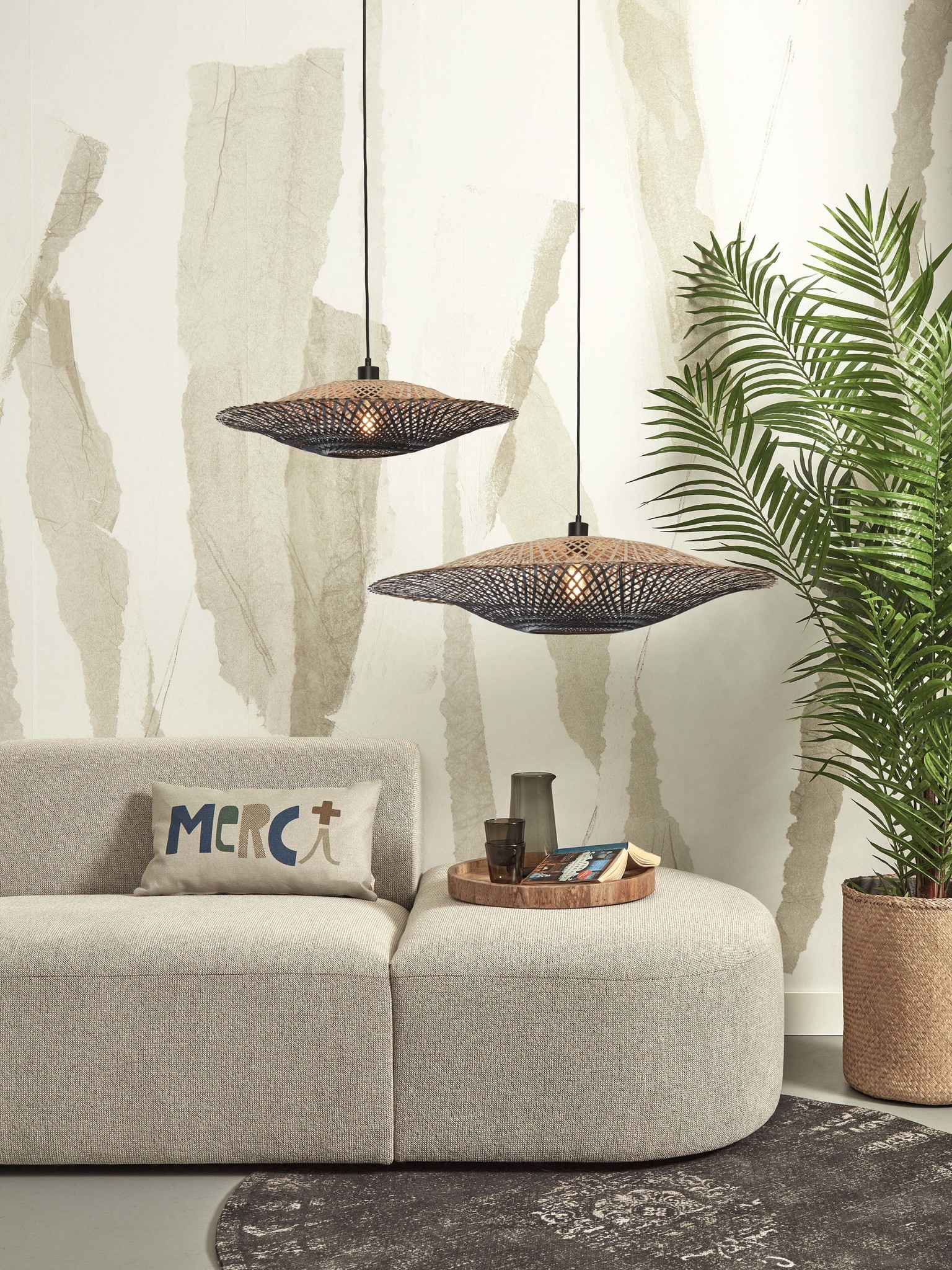 De collectie GOOD&MOJO lampen bestaat uit sustainable materialen, zoals oude autobanden, rotan, eco linnen, zeegras, bamboe en een groot gedeelte van de productie bestaat uit handwerk. Unieke handgemaakte lampen bestaande uit natuurlijke materialen is de basis.