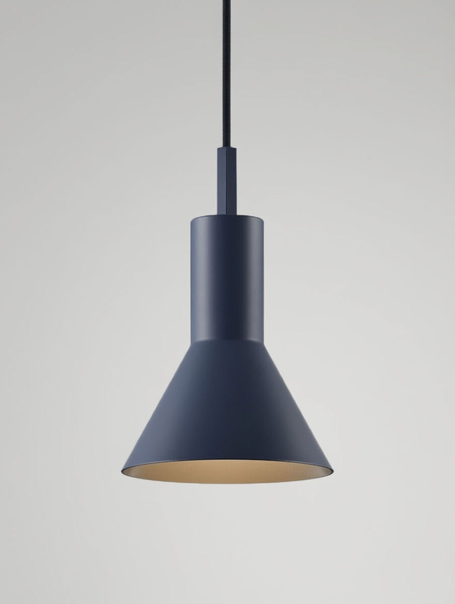 De Stavanger hanglamp combineert een minimalistisch ontwerp met een rustige, matte afwerking. De donkerblauwe kleur geeft de lamp een moderne en elegante uitstraling, terwijl het licht mooi gericht naar beneden schijnt.