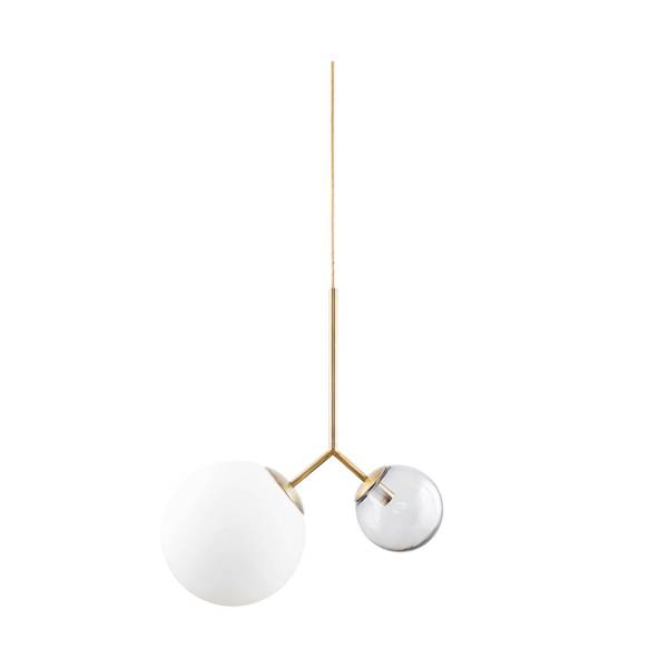 Wat een pareltje! Deze hanglamp TWICE van House Doctor heeft een messing frame, wat deze lamp direct een exclusieve uitstraling geeft. De lamp heeft een witte glazen kap en een grijze glazen kap. Dit zorgt voor een elegante look. De ene kap is groter dan de andere, waardoor het geheel een retro uitstraling krijgt. De lamp geeft zacht en warm licht, wat voor elke kamer geschikt is. Het is een eye catcher bij binnenkomst in de hal. Maar ook boven de eettafel is deze hanglamp een echte blikvanger. Door de vormen kun je zeggen dat het een echt kunstwerk is.