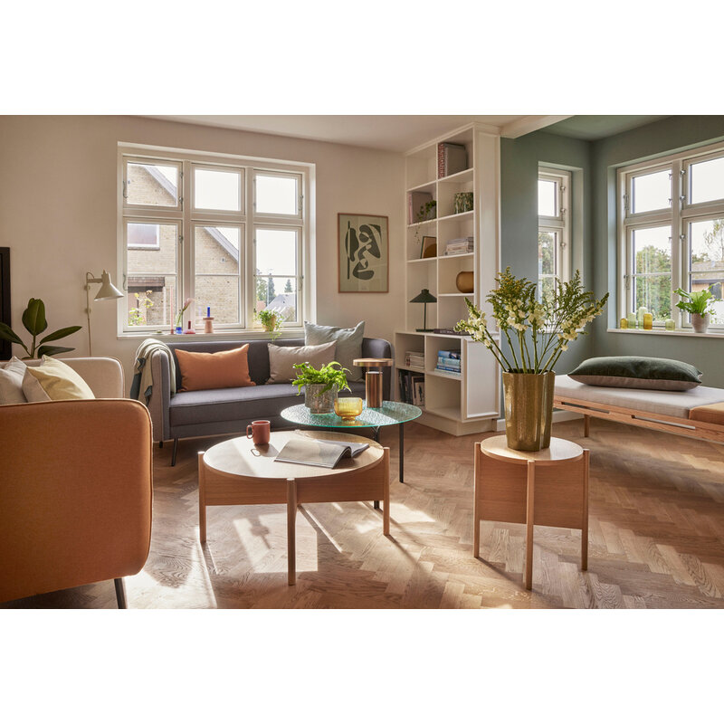 Round oak side table in oak wood and veneer. Made from FSC®-certified wood.