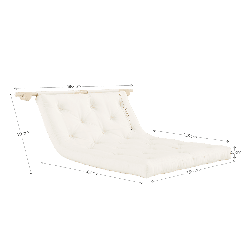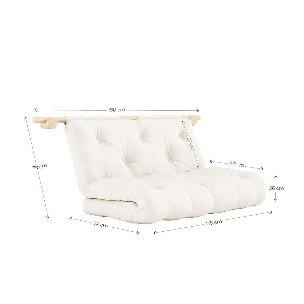 Met de HOOKED RAW 135 van Karup Design haal je een multifunctionele blikvanger in huis. Deze slimme sofa bed hangt stijlvol tegen de muur en neemt nauwelijks ruimte in beslag. Heb je onverwacht gasten of wil je gewoon relaxen? Haal Hooked omlaag en geniet van een ruime zitplek of een comfortabel bed van 135 x 200 cm.