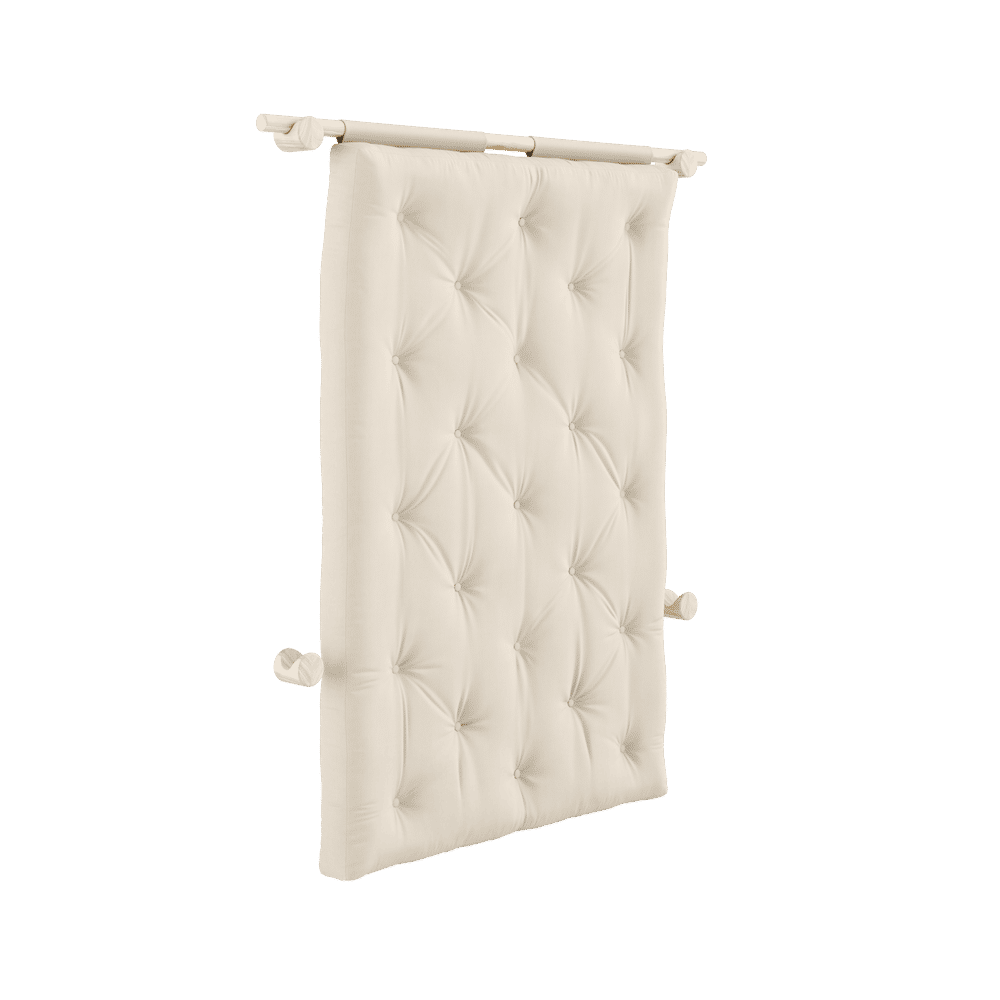 De BRAVO-matras in tijdloos beige straalt rust en zachtheid uit. Het duurzame materiaal, een mix van katoen en polyester, biedt een heerlijke balans tussen stevigheid en comfort. Dankzij de vier stevige beugels kun je Hooked eenvoudig verplaatsen naar een andere kamer, ideaal voor flexibel wonen.
