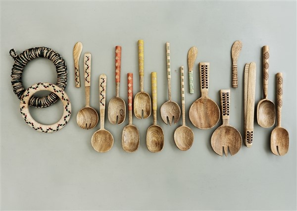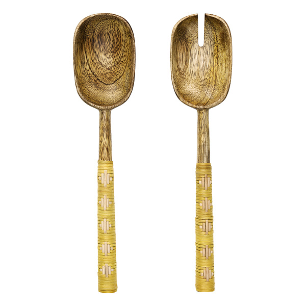 Ieder exemplaar is met de hand gesneden uit mangohout, een houtsoort die bekend staat om zijn levendige kleurschakeringen en natuurlijke knoesten. Hierdoor is geen enkel paar identiek. De bamboe handgrepen geven de set een lichte en frisse uitstraling. Een duurzaam en tijdloos alternatief voor kunststof of metaal.
