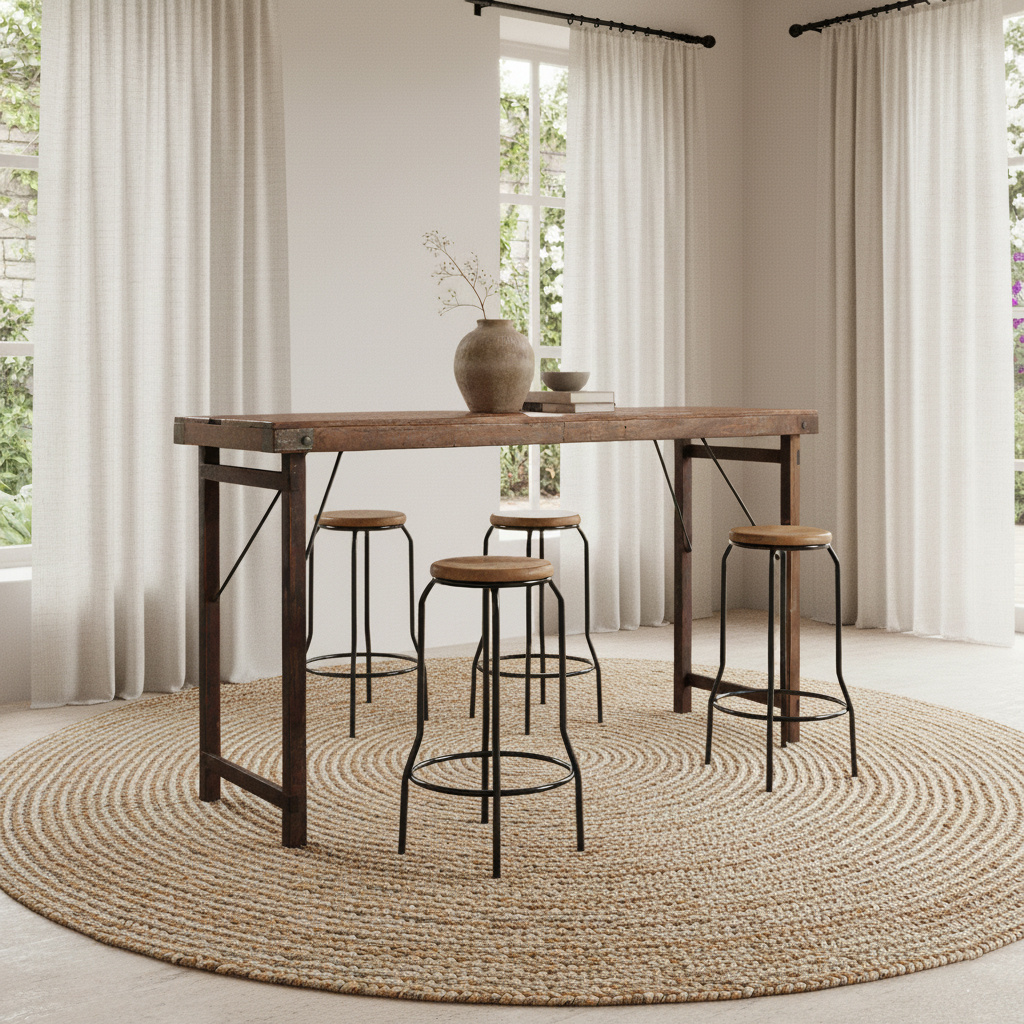 Deze originele Indiase klaptafels vertellen een verhaal. Ze werden jarenlang gebruikt bij bruiloften, festivals en grote bijeenkomsten in India. De tafels reisden mee op vrachtwagens van dorp tot dorp en werden telkens weer uitgeklapt voor een nieuw feest. Wanneer het evenement voorbij was, gingen ze opgevouwen mee naar de volgende bestemming, klaar voor een nieuw hoofdstuk.