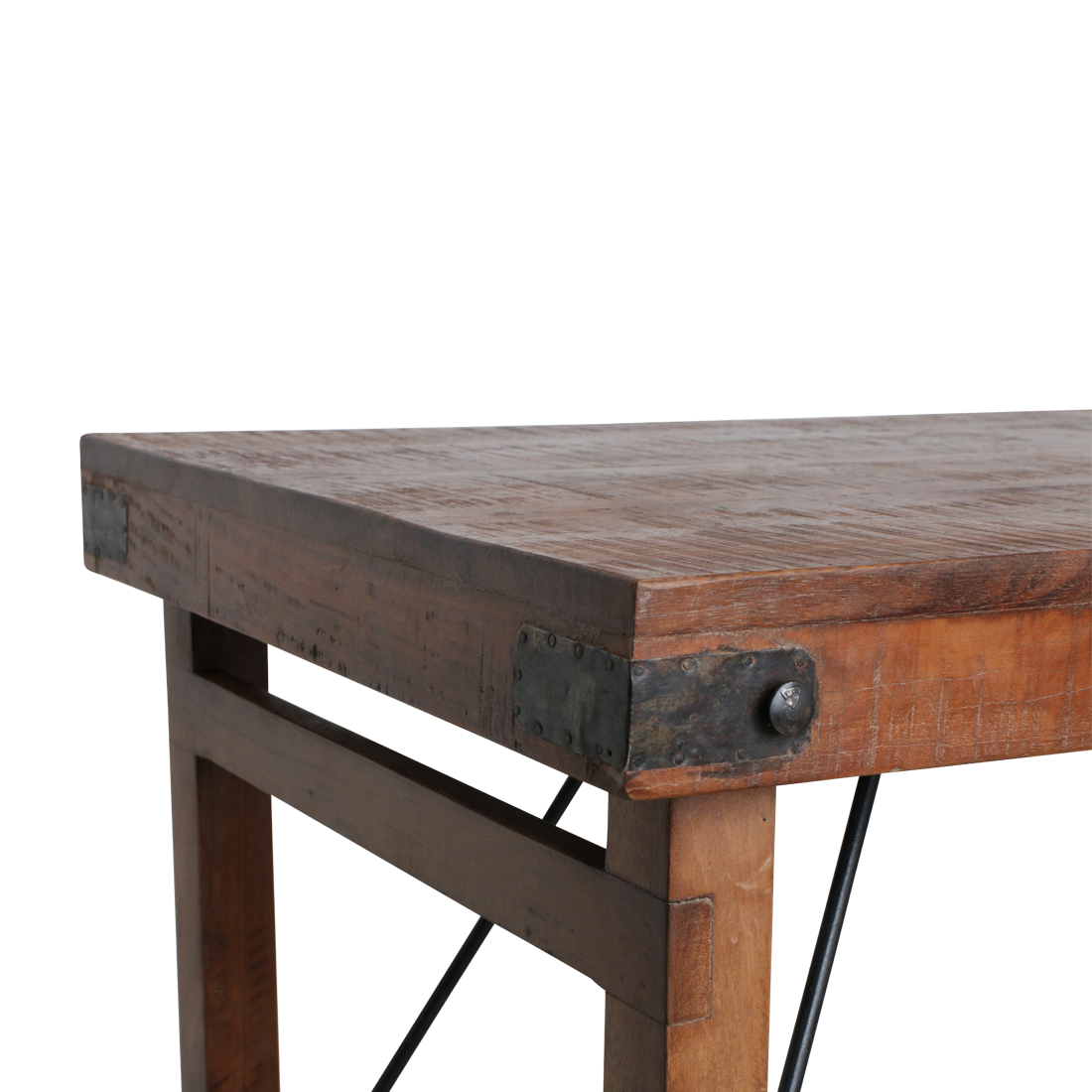 Elke tafel draagt de sporen van dat rijke verleden. De verweerde afwerking, lichte krassen en metalen reparaties geven elk stuk een unieke uitstraling. Geen enkele tafel is hetzelfde, en juist dat maakt ze zo bijzonder.