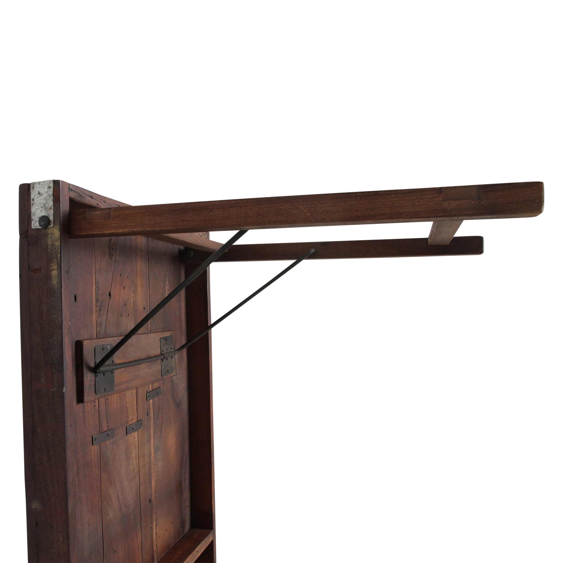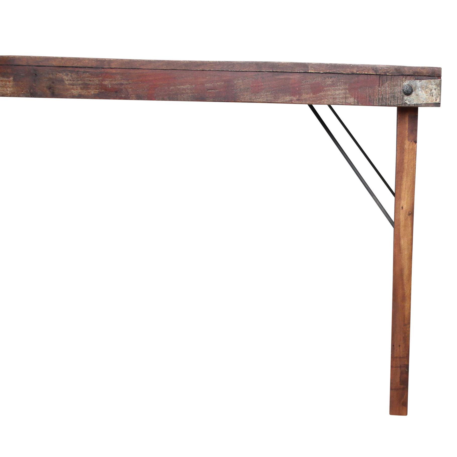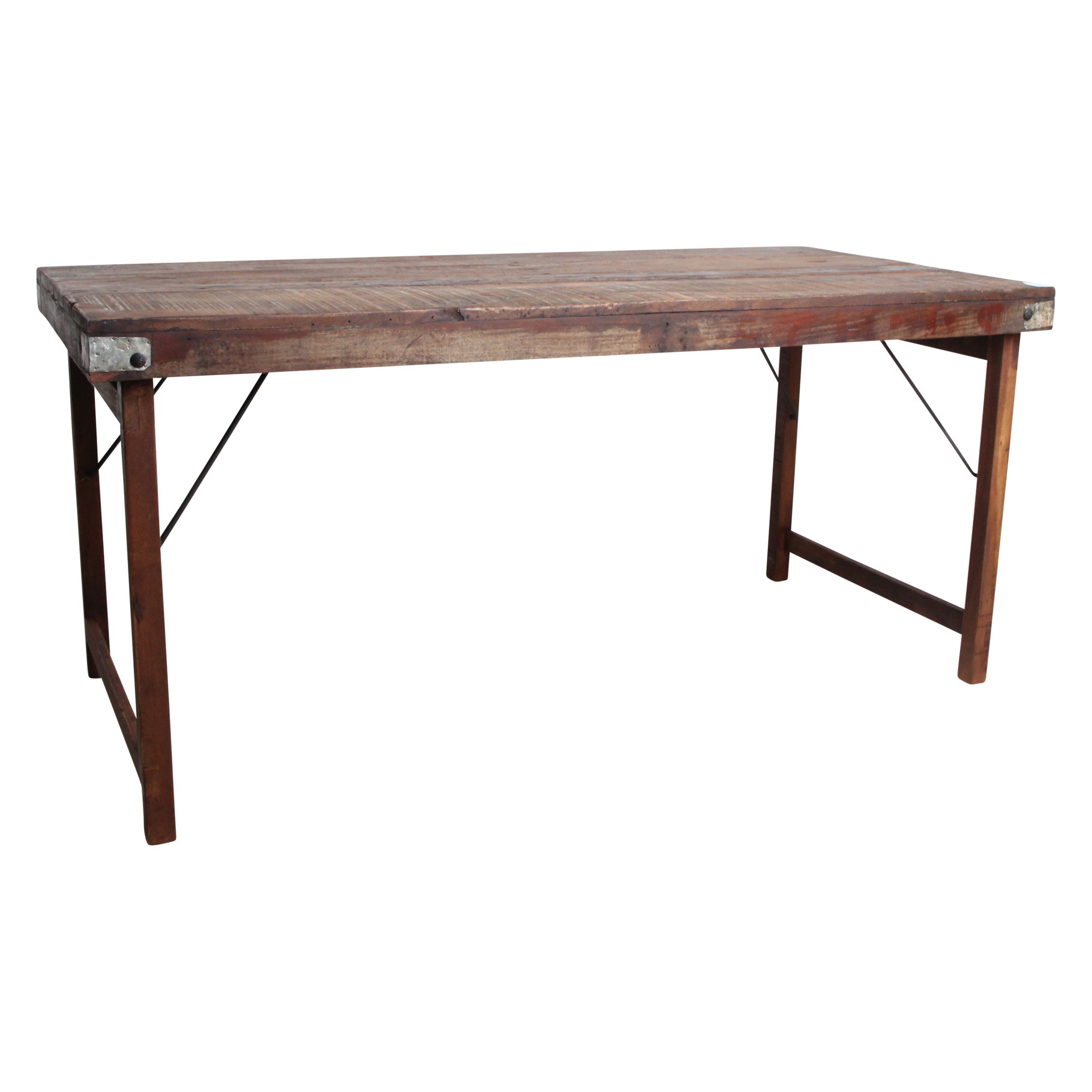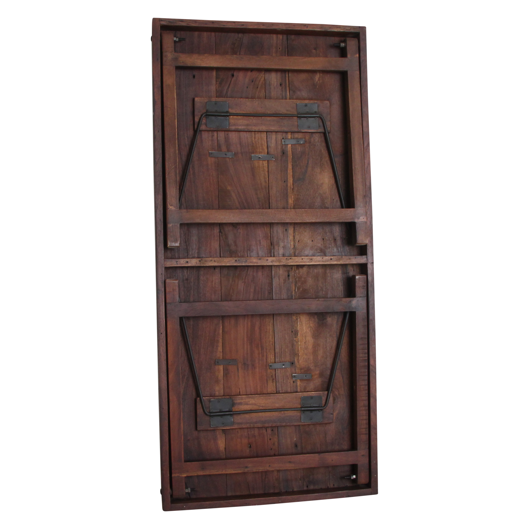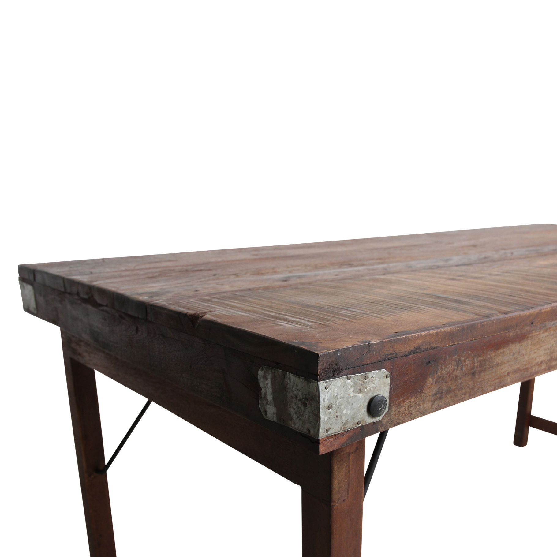 Deze unieke opvouwbare eettafel is gemaakt van gerecycled hardhout met een natuurlijke, verweerde uitstraling. Ooit werden dit soort klaptafels gebruikt bij Indiase bruiloften, festivals en openbare evenementen. Ze werden per vrachtwagen aangevoerd, naast elkaar uitgeklapt en na afloop weer naar een nieuwe locatie verplaatst. Iedere tafel draagt daardoor een eigen verhaal, met markeringen en krassen die de leeftijd en gebruiksgeschiedenis weerspiegelen. Volledig opgeknapt en duurzaam In onze fabriek in India worden alle tafels zorgvuldig gerestaureerd. Beschadigde planken vervangen we door hout van andere tafels, spijkers verwijderen we uit het hout, en versleten poten worden vervangen door stevige gerecyclede houten poten. Zo krijgt iedere tafel zijn originele charme terug, zonder concessies te doen aan stevigheid en bruikbaarheid.