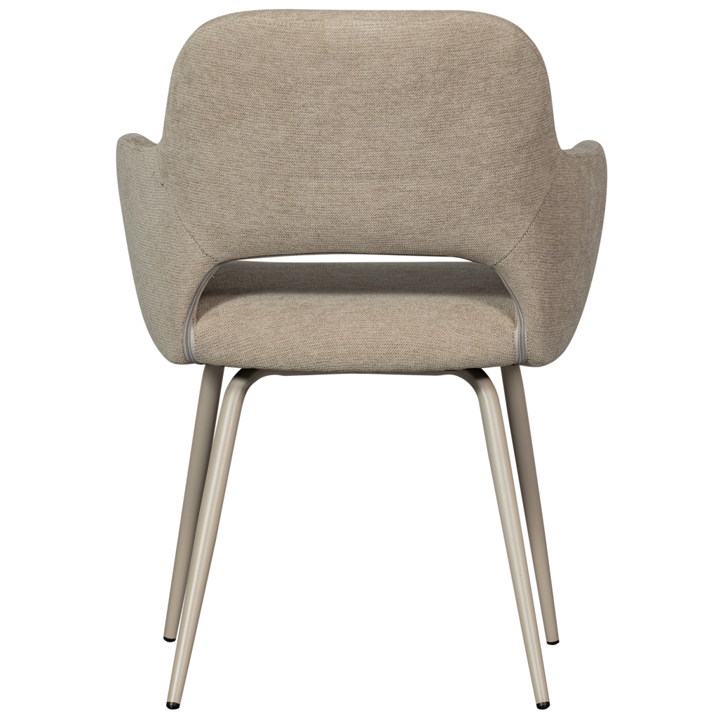 Qua zitcomfort scoort Jenny hoog. De rugleuning is licht afgerond en biedt fijne ondersteuning, terwijl de zithoogte van 47 cm en een zitdiepte van 45 cm zorgen voor een ontspannen zit. De armleuningen met een hoogte van 25 cm en breedte van 7 cm voegen extra comfort toe en maken lang tafelen nog aangenamer.