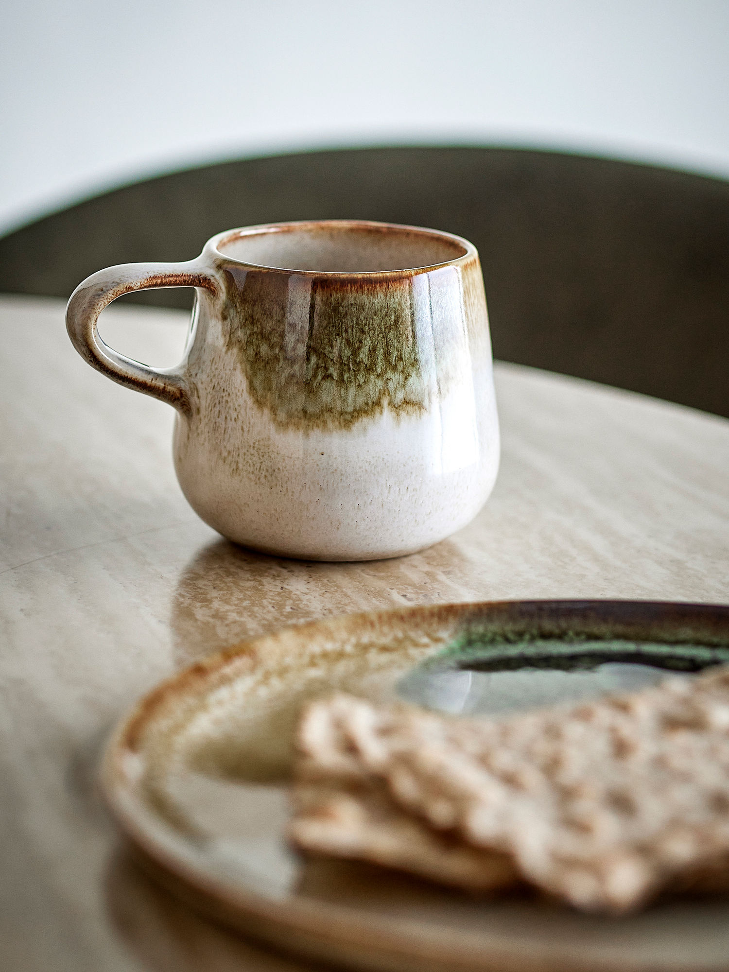 De Jules ontbijtset van Bloomingville bestaat uit 12 stoneware stukken met reactieve glazuur in zachte groentinten met olijf- en bruintinten. De warme kleurvariaties en handgemaakte afwerking geven elk item een unieke look – perfect voor een sfeervol ontbijt of brunch.
