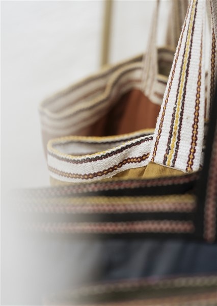 Deze ruime tote bag in blauw, zand en zwart is gemaakt van stukgeverfd katoen dat bestand is tegen verkleuring. De tas is perfect voor weekendtripjes, stranddagen of je dagelijkse boodschappen, en blijft comfortabel dragen dankzij de brede schouderbanden.