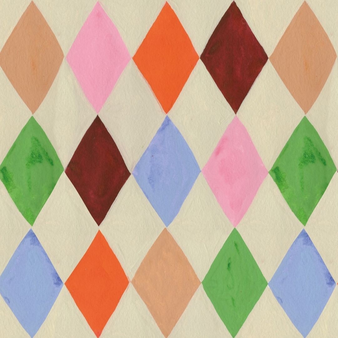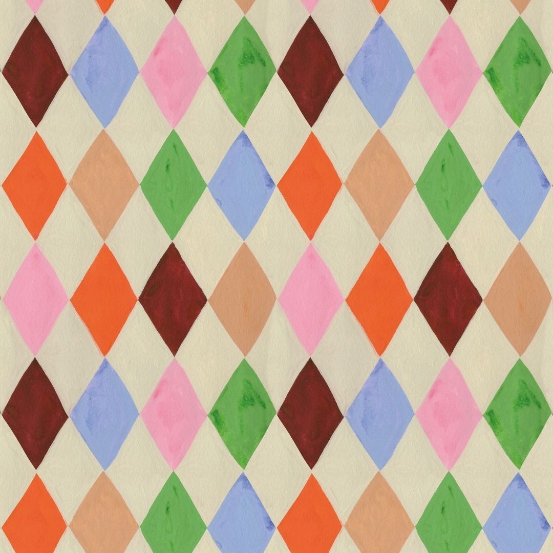 Het Harlequin Multicolor behang van Meet Me at the Wall x Aniek Bartels is een speels, kleurrijk en veelzijdig ontwerp. Het wiebertjes patroon bestaat uit vrolijke kleuren zoals groen, roze, peach, blauw, burgundy en rood, afgewisseld met een rustige beige achtergrond.