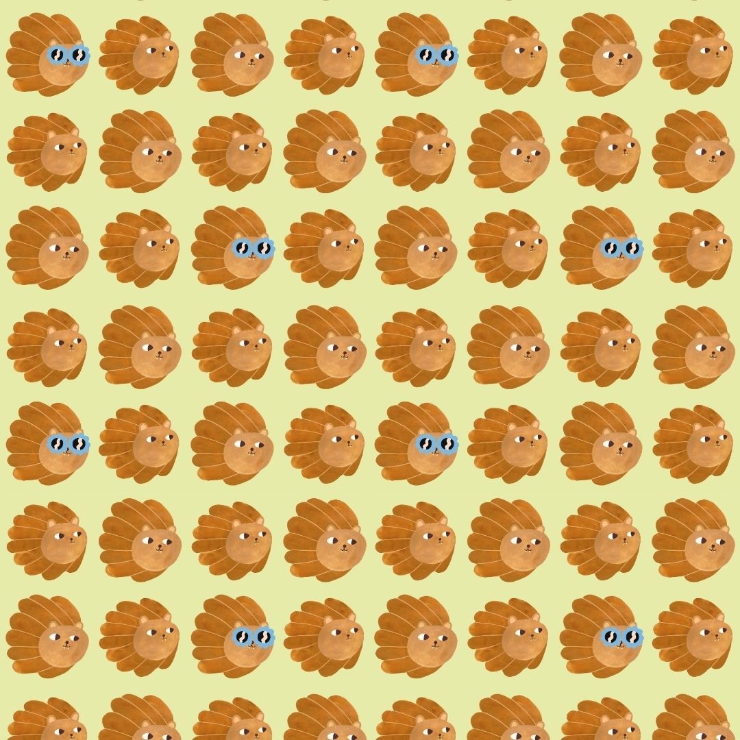 • Kleurstelling: matcha groene achtergrond, handgeschilderde leeuwenhoofden met blauwe brilletjes