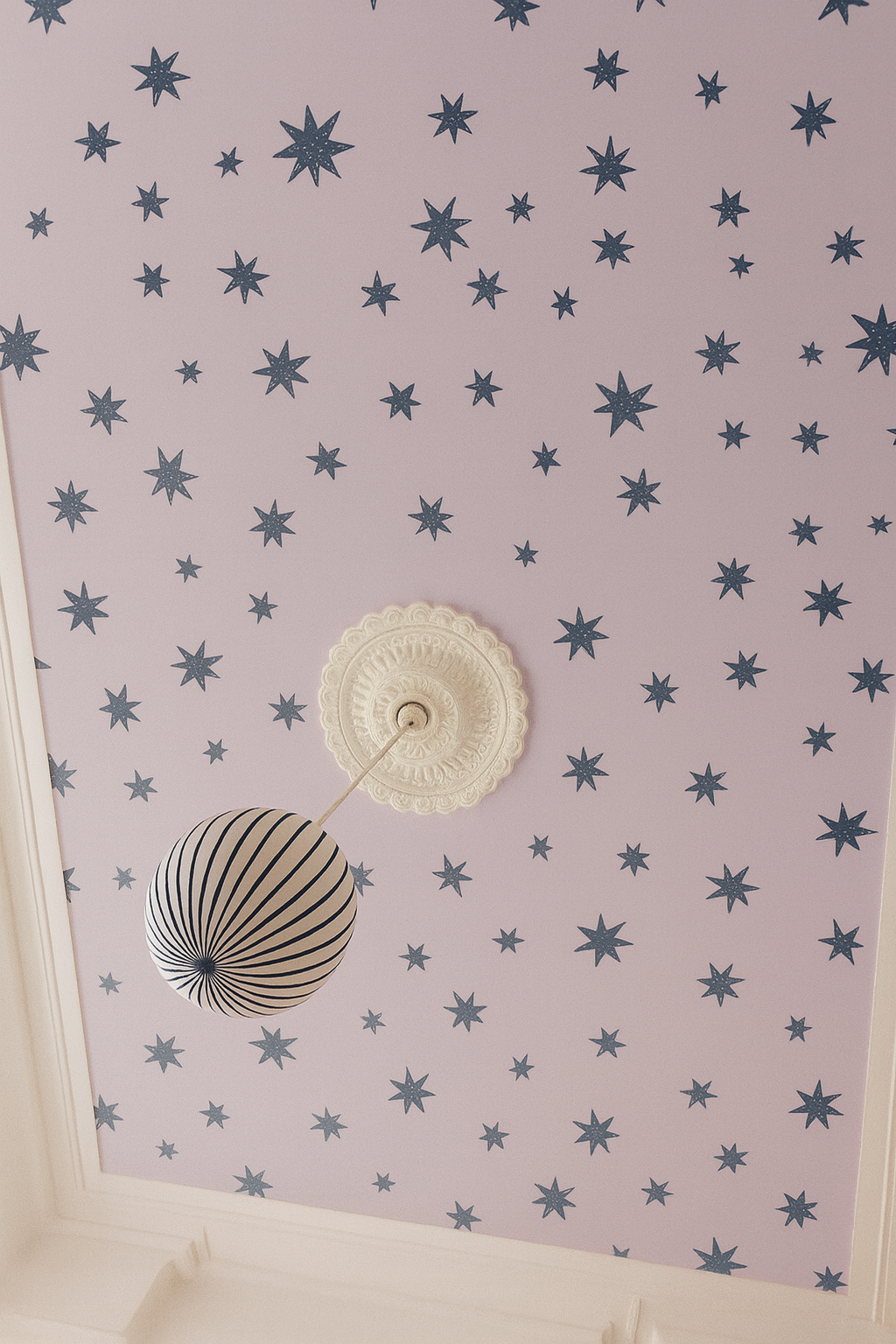 Met Starry Night – Lilac brengt ontwerper Joëlle Wehkamp een speels en stijlvol design naar de kinderkamer. Grafisch getekende sterren in verschillende groottes dansen over de muur. Het contrast tussen de lilakleurige achtergrond en de donkerblauwe sterren geeft het behang een frisse, eigentijdse en dromerige uitstraling.
