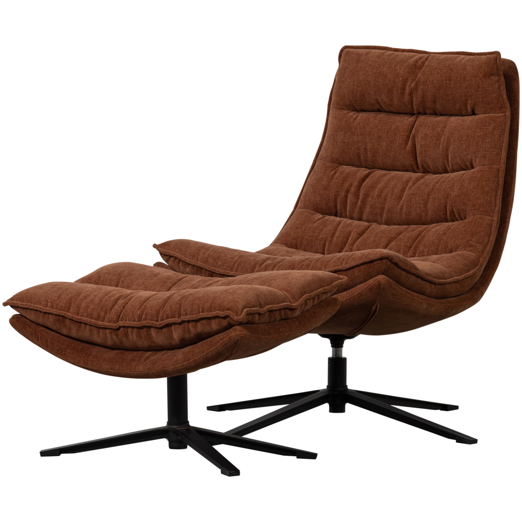 Comfortabel draaien – Kube fauteuil met hocker bruin