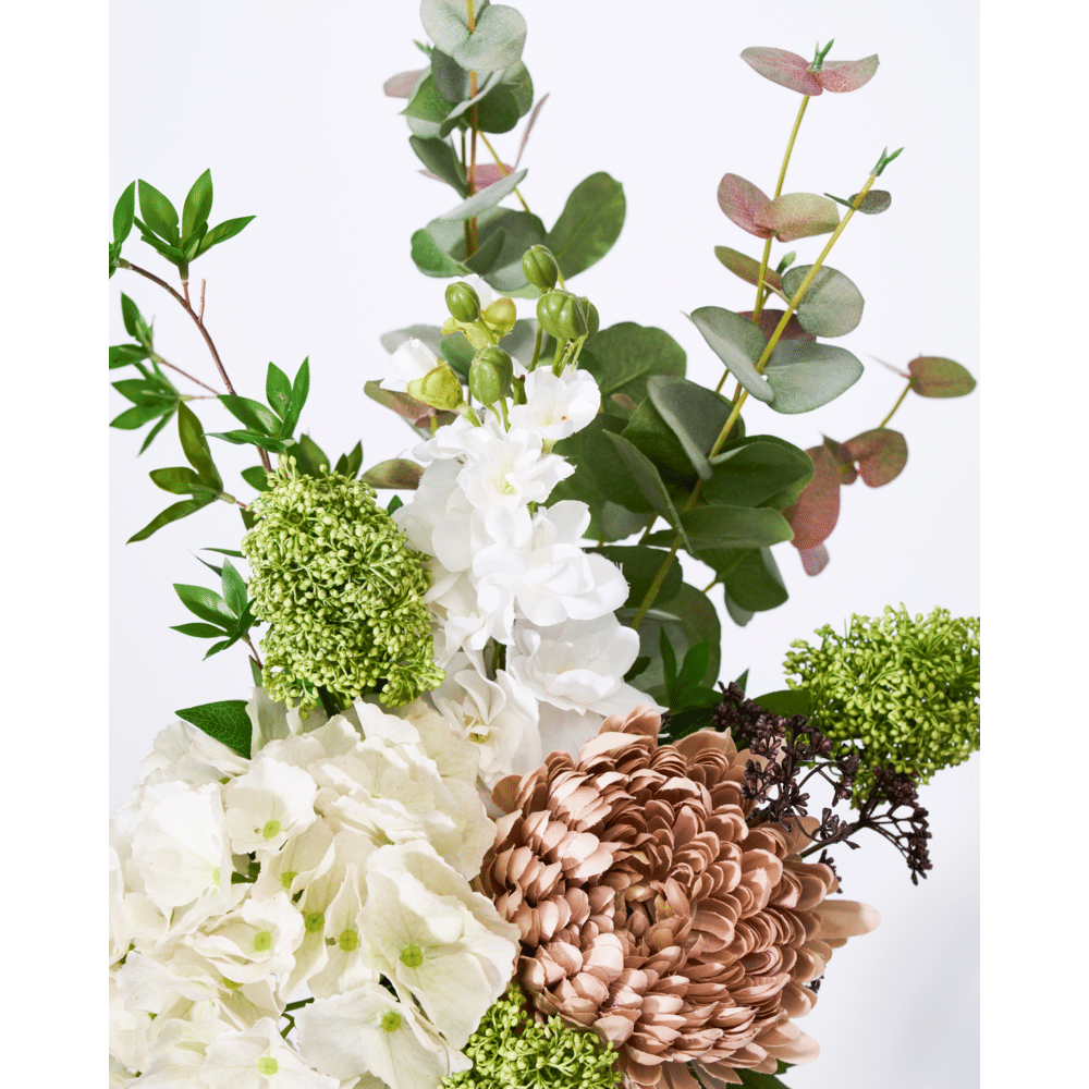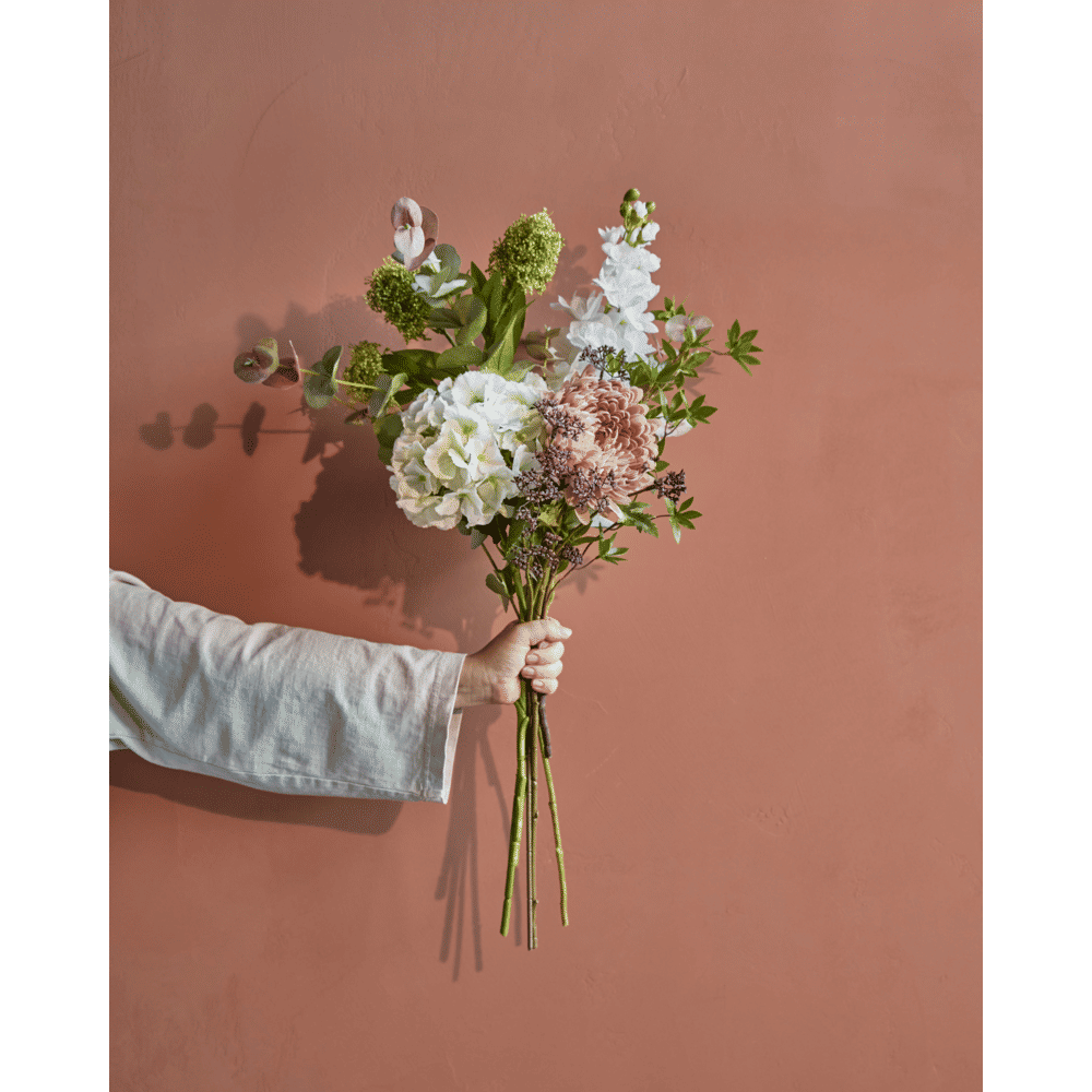 Breng een lichte en naturellijke sfeer in je interieur met Wild. Dit kunstboeket combineert crèmekleurige bloemen met groen blad voor een volle en levensechte uitstraling. De zachte tinten blijven seizoen na seizoen mooi, waardoor je interieur een blijvende, naturellijke touch krijgt.