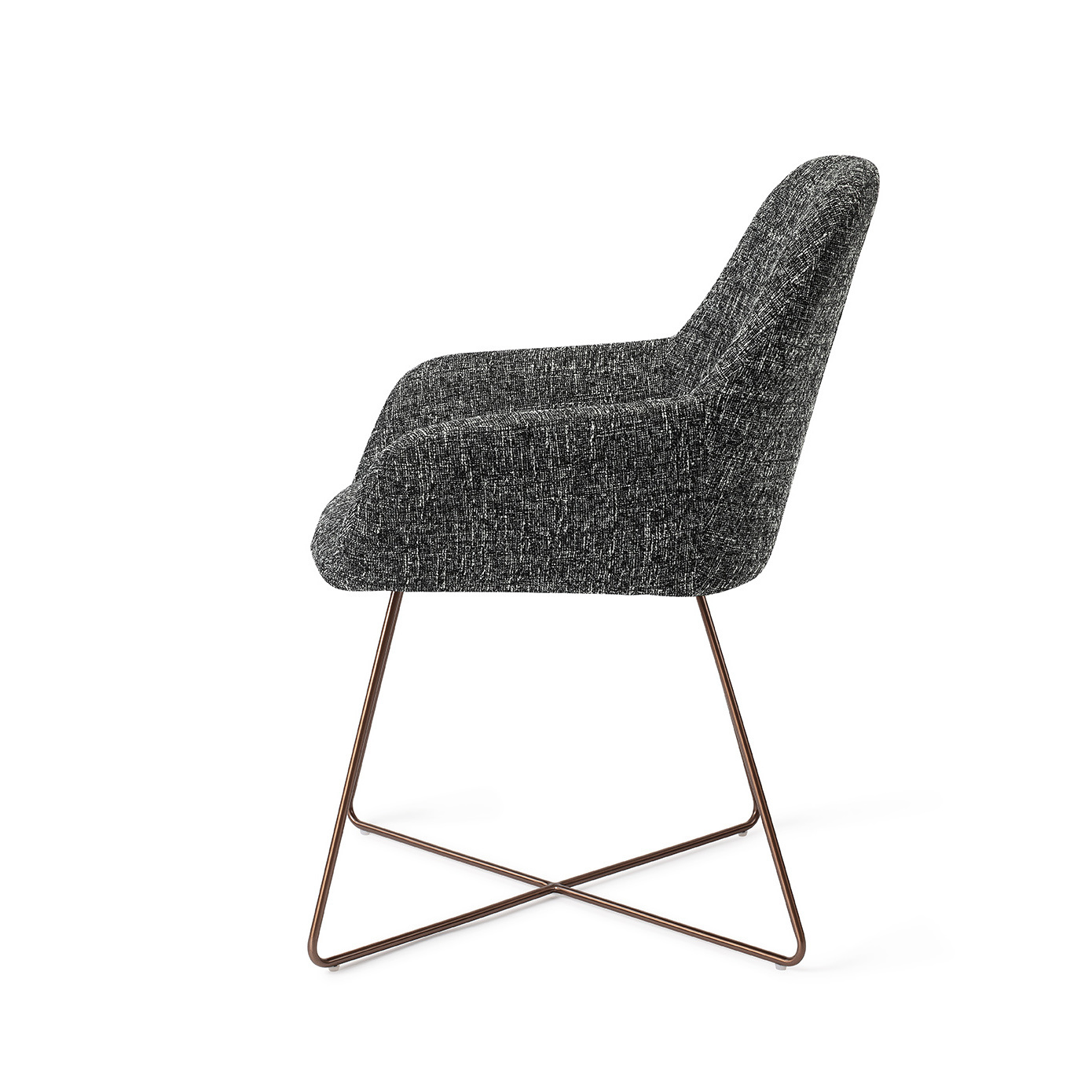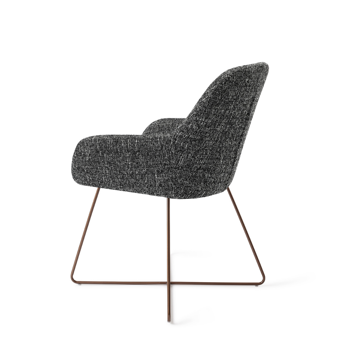 Combineer de Kushi eetkamerstoel met een onderstel van jouw keuze! Zo customize je je eigen stoel: kies een van de kleurvarianten en combineer jouw favoriete zitting met een van twintig mogelijke onderstellen. Je hebt de keuze uit een Slide frame - elegant lijnenspel, Cross frame - speels lijnenspel, Turn frame - 180 graden draaibaar, of Beehive frame - gespiegeld hexagoon. Ieder onderstel is vervaardigd uit hoogwaardig metaal en is verkrijgbaar in de finish mat zwart of wit, mat RVS, mat gold en mat rosé. De Kushi eetkamerstoel is eenvoudig te monteren.