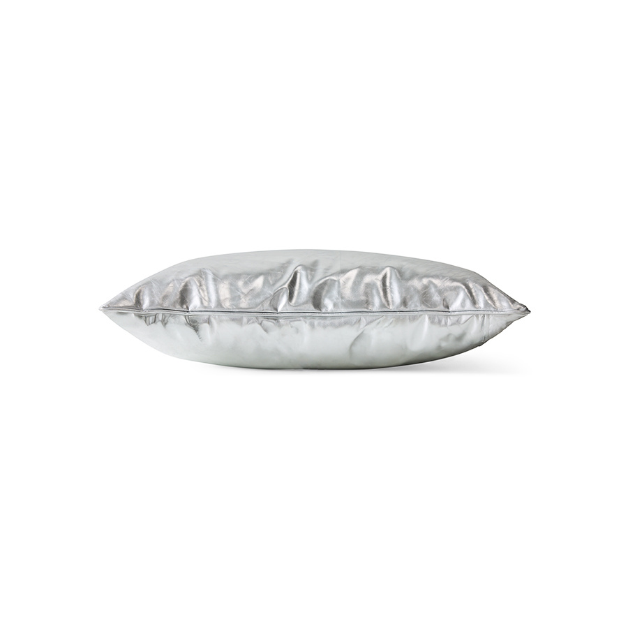 Het HKLIVING silver lining kussen speelt subtiel met licht. De licht reflecterende afwerking zorgt voor een zachte glans die gedurende de dag verandert van karakter.