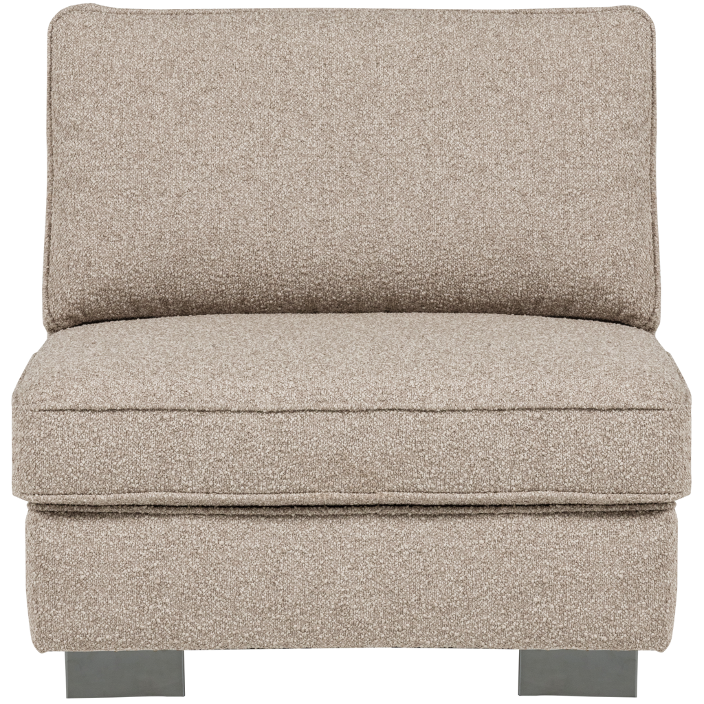Het vtwonen Lazy 1-zits element in naturel bouclé is een veelzijdig basiselement voor jouw loungehoek. De royale zitting en de zachte textuur van de bouclé stof zorgen voor optimaal comfort. De chroomkleurige poten voegen een subtiel modern accent toe. Combineer dit element eenvoudig met andere delen uit de Lazy-serie en ontwerp jouw perfecte zithoek. Met de Lazy relax je in stijl!