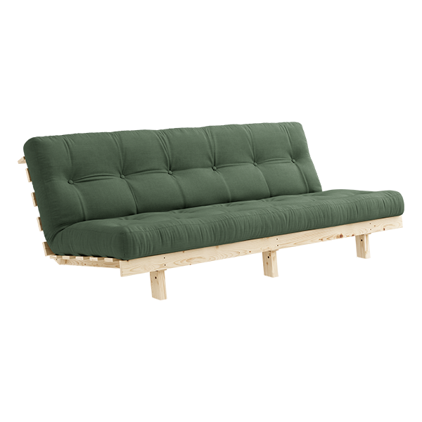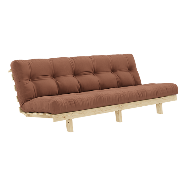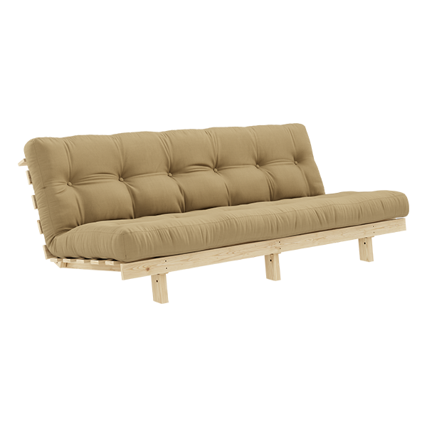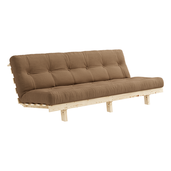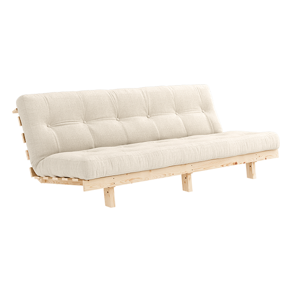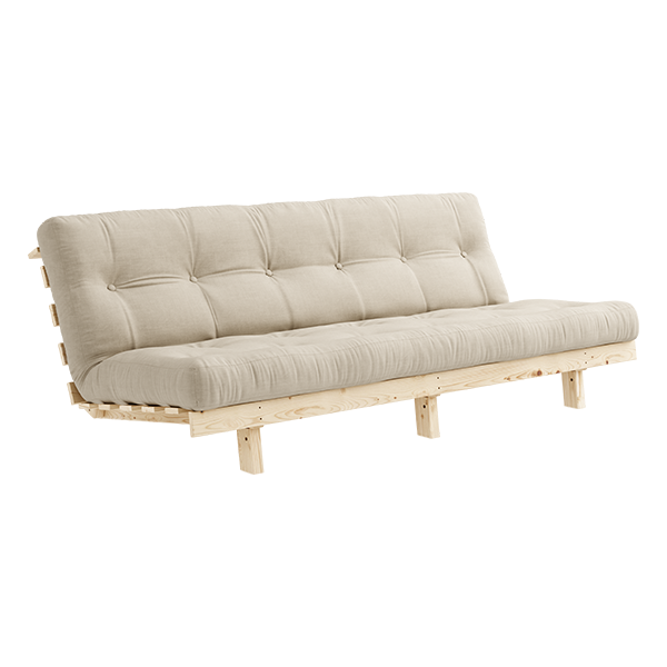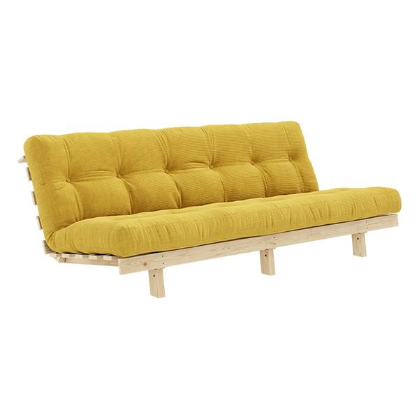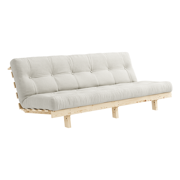 De drie stevige poten zorgen voor extra stabiliteit en maken de overgang van zit- naar slaapstand verrassend eenvoudig. De comfortabele futonmatras is handgemaakt en gevuld met een combinatie van gerecyclede vezels en een zachte schuimkern – goed voor urenlang loungen of een heerlijke nachtrust. Combineer Lean met jouw favoriete kussens en plaids en geef het een persoonlijke touch.