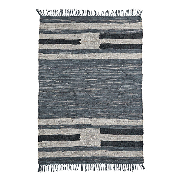 Lederen vloerkleed dusty blue, lichtgrijs, zwart