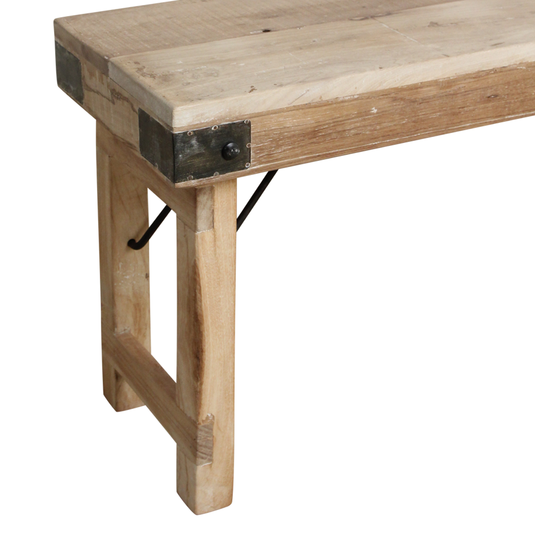 Deze inklapbare eetkamerank met limewash is geïnspireerd op de traditionele klaptafels uit India en vertelt een verhaal van eeuwenoude ambacht. Ooit werden deze meubels gebruikt tijdens Indiase bruiloften, festivals en openbare gelegenheden, waar ze eenvoudig bij elkaar werden gezet voor feesten en na afloop weer ingeklapt en naar een nieuwe locatie gebracht. Tegenwoordig is deze inklapbare bank een favoriet in onze collectie, ideaal voor gebruik als eetkamerbank, tuintafelbank, bijzetbank, of praktische zitplek in huis, restaurants en hotels. Het design past zowel in moderne interieurs als in landelijke en industriële stijlen, binnen en buiten.