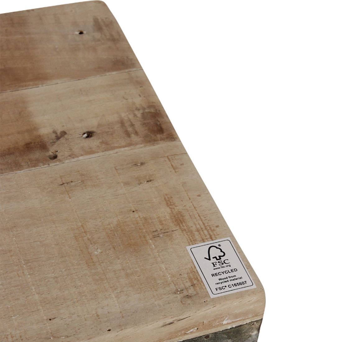 Het hout van deze bank komt uit verantwoord beheerde bronnen en bestaat uit gerecyclede teakbalken en -delen. FSC-gerecycled hout betekent dat er geen nieuwe bomen illegaal zijn gekapt voor dit meubel en dat het hout afkomstig is uit bestaande houtstromen of oude constructies. Zo krijgt het hout een tweede leven, wordt afval hergebruikt en blijven natuurlijke bossen onaangetast. Het resultaat is een duurzame, milieuvriendelijke tafel die bijdraagt aan het behoud van bossen wereldwijd, zonder in te leveren op kwaliteit of stevigheid.